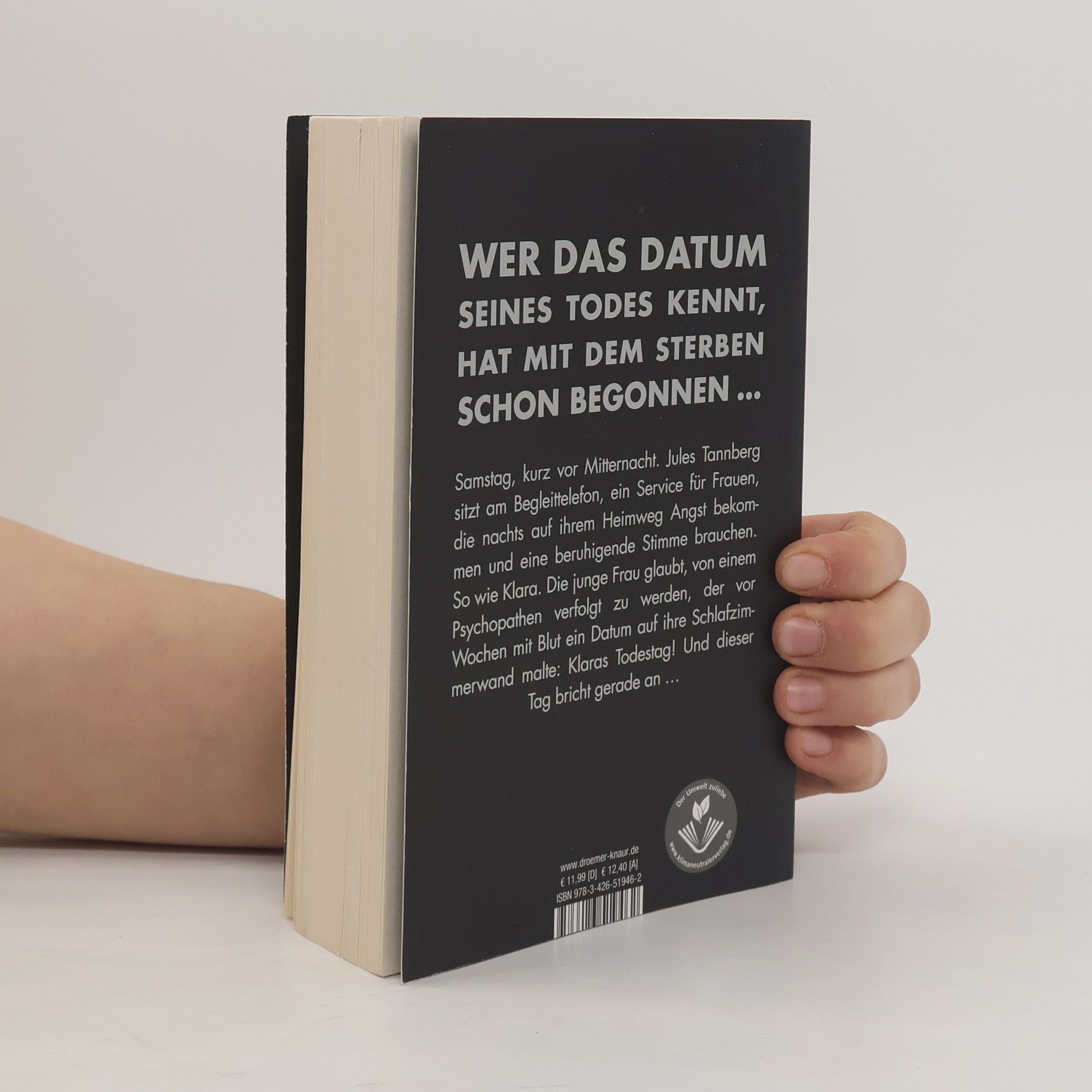 Wer das Datum seines Todes kennt, hat mit dem Sterben schon begonnen – dieser Bestseller von Sebastian Fitzek ist nichts für schwache Nerven! Es ist Samstag, kurz nach 22.00 Uhr. Jules Tannberg sitzt am Begleit-Telefon. Ein ehrenamtlicher Telefon-Service für Frauen, die zu später Stunde auf ihrem Heimweg Angst bekommen und sich einen telefonischen Begleiter wünschen, dessen beruhigende Stimme sie sicher durch die Berliner Nacht nach Hause führt - oder im Notfall Hilfe ruft. Noch nie gab es eine wirklich lebensgefährliche Situation. Bis heute, als Jules mit Klara spricht. Die junge Frau hat entsetzliche Angst. Sie glaubt, von einem Mann verfolgt zu werden, der sie schon einmal überfallen hat und der mit Blut ein Datum auf ihre Schlafzimmerwand malte: Klaras Todestag! Und dieser Tag bricht in nicht einmal zwei Stunden an ... Ein Serienmörder auf freiem Fuß – geheimnisvoll, beklemmend, nervenaufreibend: Einer der spannendsten Thriller aus der Feder des Bestsellerautors Sebastian Fitzek „Eines vermag dieser Autor wie kein Zweiter: eine Spannung aufzubauen, die zum Schluss schon fast als schmerzhaft empfunden wird.“ krimi-couch
