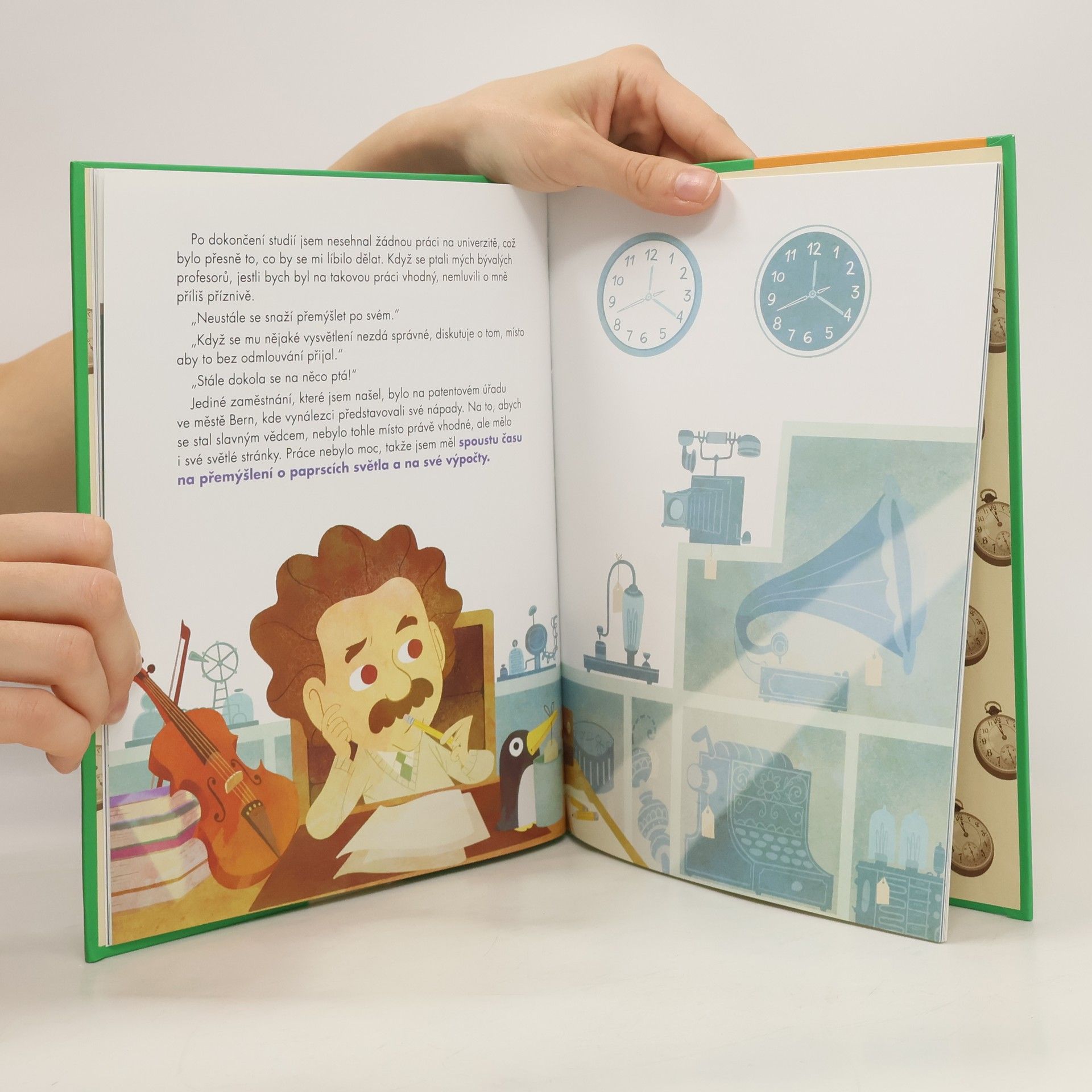 A takový byl i Albert Einstein. Jeho mimořádnou schopností byla neobyčejná touha přijít na to, proč jsou věci takové, jaké jsou. Jeho znalosti matematiky a zdravá dávka intuice byly obdivuhodné. Díky svým schopnostem objevil teorii relativity, která prokázala, že čas a prostor nejsou vždy pro všechny stejné. Tento a mnohé další jedinečné objevy z něj udělaly nejdůležitějšího vědce 20. století a možná i celé historie. Takové byly jeho úspěchy a toto je jeho příběh.