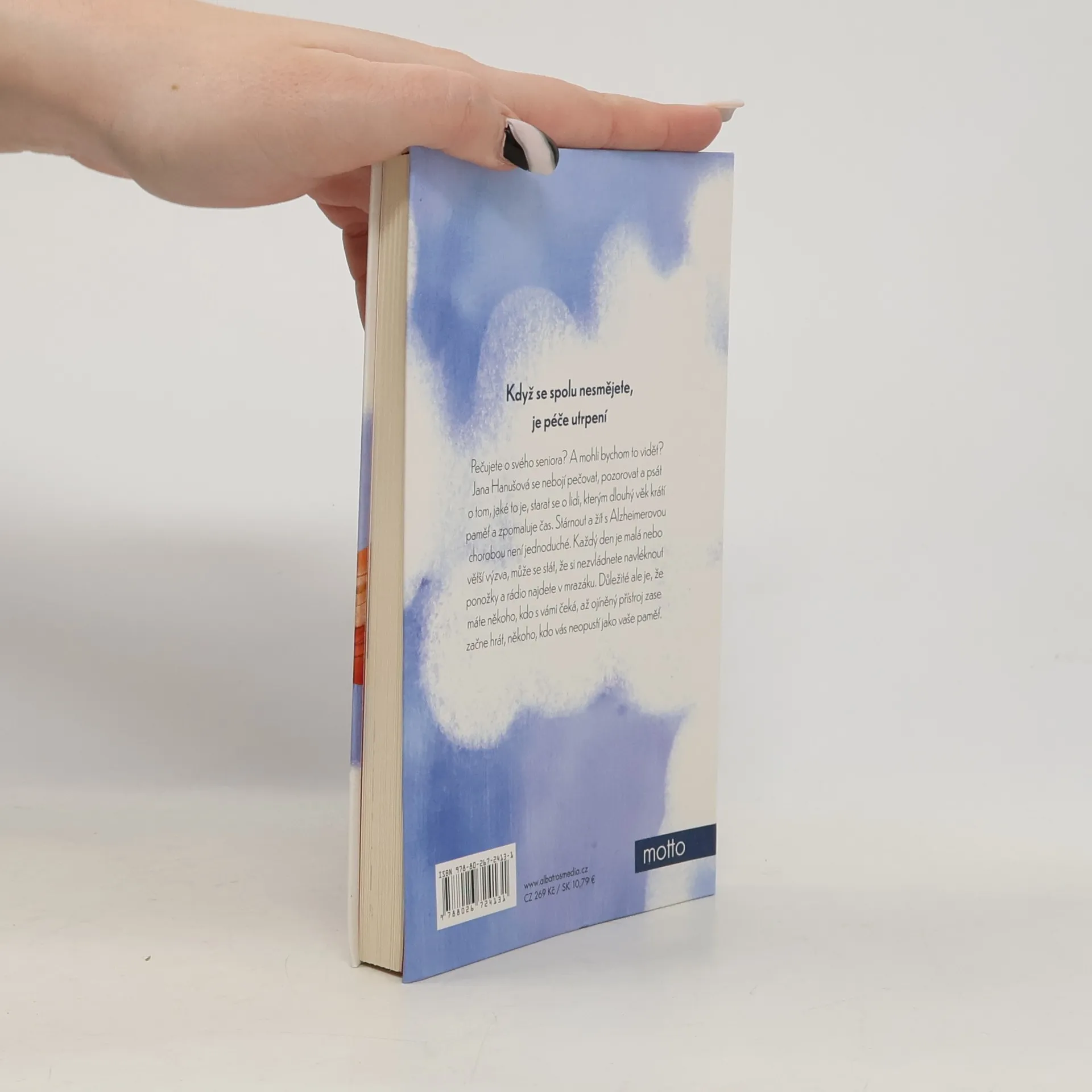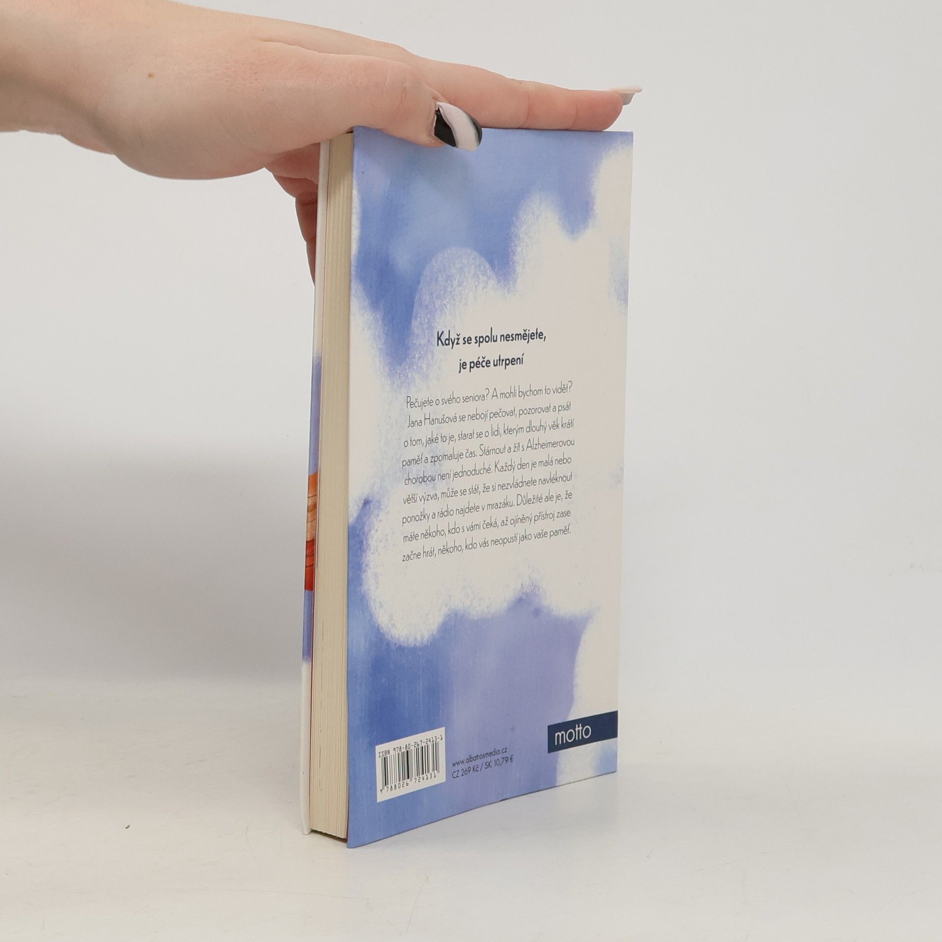 Když se spolu nesmějete, je péče utrpení.Pečujete o svého seniora? A mohli bychom to vidět? Jana Hanušová se nebojí pečovat, pozorovat a psát o tom, jaké to je, starat se o lidi, kterým dlouhý věk krátí paměť a zpomaluje čas. Stárnout a žít s Alzheimerovou chorobou není jednoduché. Každý den je malá nebo větší výzva, může se stát, že si nezvládnete navléknout ponožky a rádio najdete v mrazáku. Důležité ale je, že máte někoho, kdo s vámi čeká, až ojíněný přístroj zase začne hrát, někoho, kdo vás neopustí jako vaše paměť. Jana Hanušová je choreografka. Když v době covidové pandemie zavřeli divadla, rozhodla se využít své zkušenosti s péčí o nemocného tatínka, zazvonila na dveře Charity a stala se pečovatelkou o seniory. Po čase zjistila, že všechny ty úplně nové zážitky dokáže a potřebuje sdílet, a tak vznikla knížka empatických tragikomických zápisků, postřehů a glos o tom, co se dotýká každého z nás.