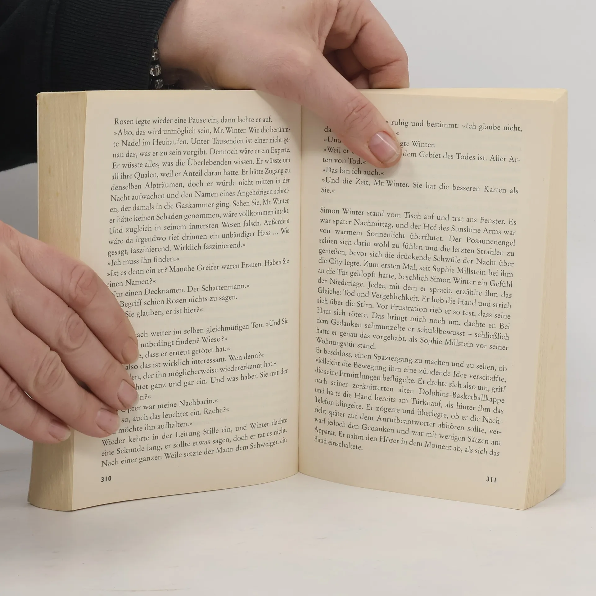 Miami 1995. Als seine Nachbarin Sophie Millstein erdrosselt aufgefunden wird, ist Detective Simon Winter klar, dass ihre Angst berechtigt war: Tags zuvor hatte die Holocaustüberlebende ihm verzweifelt berichtet, ihr sei der Schattenmann begegnet – jener Nazi-Scherge, der damals untergetauchte Juden ans Messer lieferte. Ist er zurückgekehrt, um die letzten Zeugen seiner Taten zu beseitigen?
