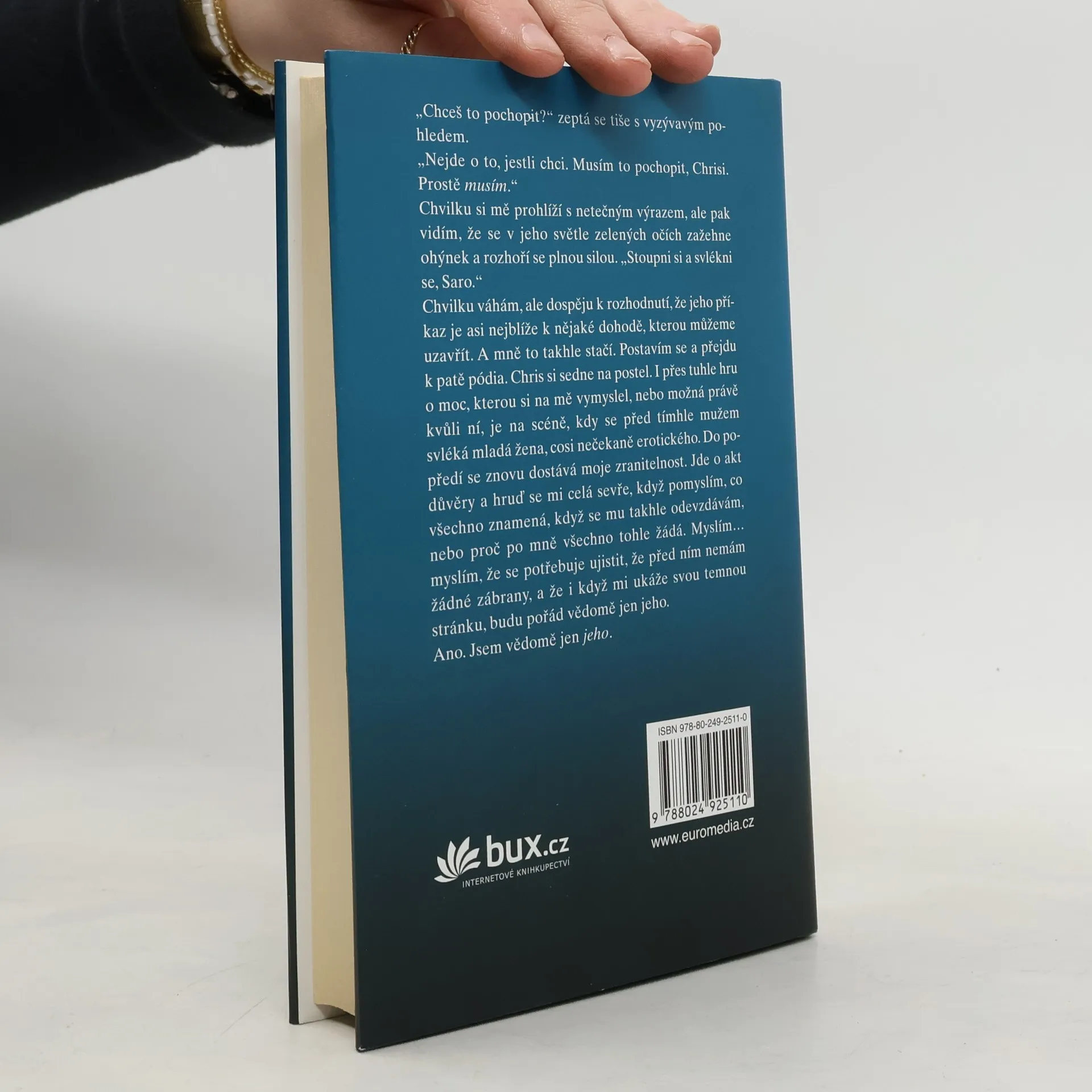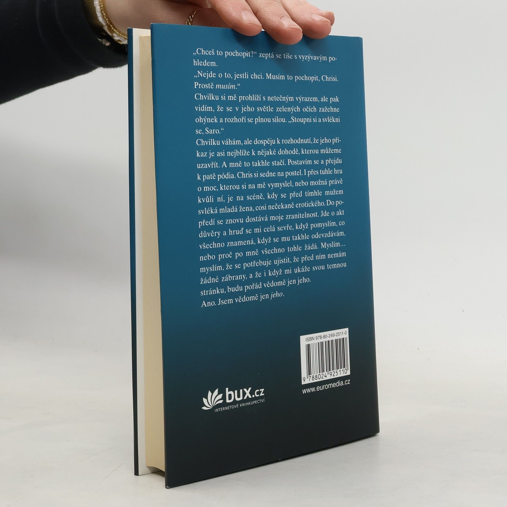 Fascinovaná temnými erotickými fantaziemi z deníku, který náhodou objevila, lapená mezi dvěma muži, které při pátrání po jeho autorce potkala, přibližuje se Sara krok za krokem k odpovědi na otázku, co se s Rebekou stalo. Zároveň si pomalu začíná uvědomovat, že její nový život je sice o poznání zajímavější než poklidná kariéra učitelky, kterou byla předtím, než přijala nabídku galeristy Marka a podvolila se charismatickému umělci Chrisovi, ale že je také o poznání nebezpečnější a že se až příliš začíná podobat příběhu Rebeccy. A ten je v očích Sary čím dál tím více zlověstně znepokojivý... Druhý díl celosvětově úspěšné erotické série, o níž američtí kritici říkají, že se v ní Padesát odstínů šedi potkává se Základním instinktem.