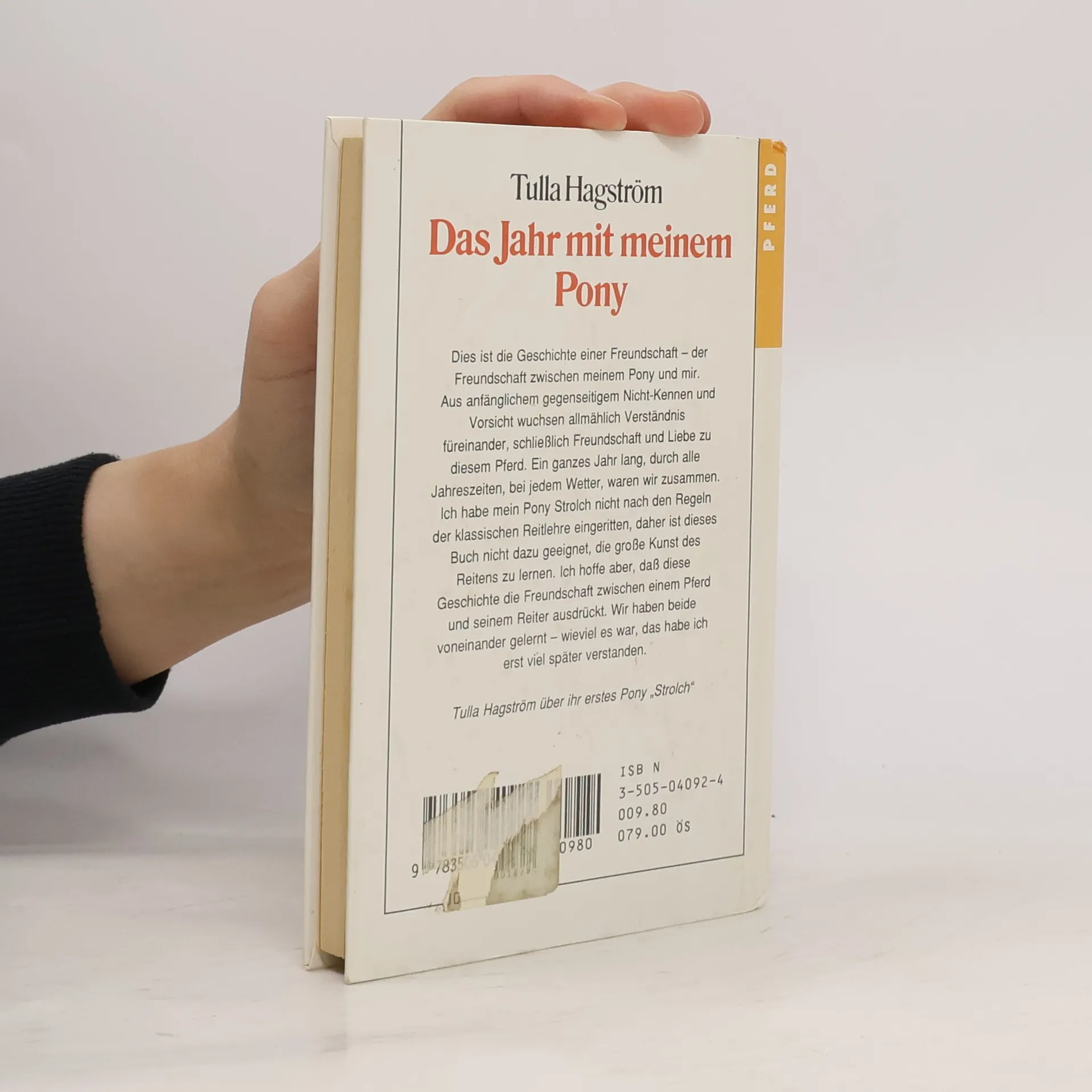 Dies ist die Geschichte von einem Mädchen und ihrem Pony - wie sie sich ganz langsam kennenlernen und das anfängliche Misstrauen überwinden, um enge Vertraute und schließlich beste Freunde zu werden. Eine zarte Beschreibung dessen, was man alles voneinander lernen kann, wenn man es nur zulässt.Tulla Hagström beschreibt in diesem herzerwärmenden Roman ihre eigenen Erlebnisse mit ihrem ersten Pony Strolch.Tulla (Torbjörg) Hagström wurde 1951 in Schweden geboren. Seit den 70'er Jahren ist sie als Schriftstellerin aktiv und hat u.a. viele Kinder- und Jugendbücher verfasst, darunter die Geschichten um das Mädchen Petra und ihre Freunde vom Reiterhof. Allerdings entstanden auch autobiografische Werke zum Thema Pferde - wie dieser kleine Roman.-