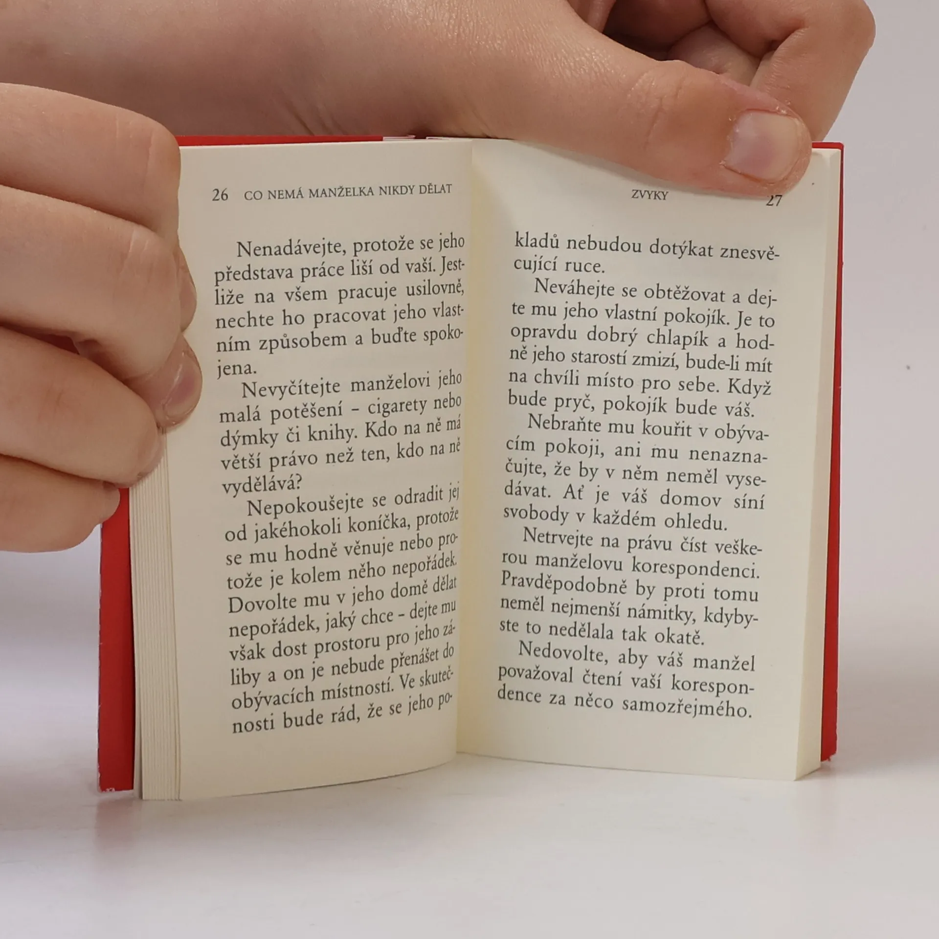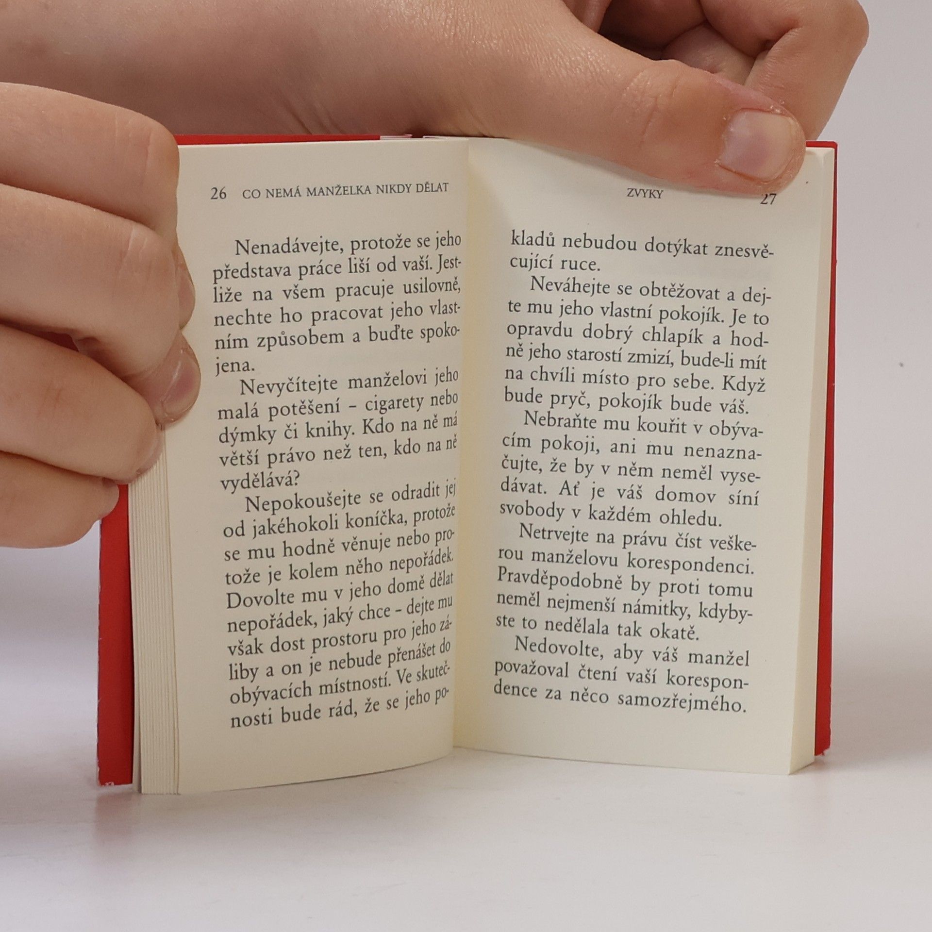 Tato kniha radí ženám, čeho všeho se mají v manželství vystříhat. Rady se týkají všeobecných domácích zvyků, jako jsou například osobní vztahy, žárlivost, finance, domácnost, zábava s přáteli, společné trávení svátků, otázky zdraví, oblečení, koníčků, stravy nebo také správné výchovy dětí. Kniha je pojatá s typickým anglickým humorem a v mnoha uvedených situacích se určitě najdete.