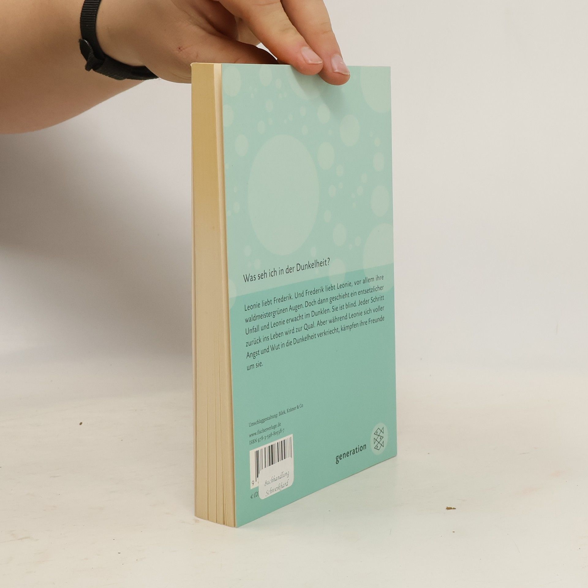 Leonie liebt Frederik. Und Frederik liebt Leonie, vor allem ihre waldmeistergrünen Augen. Doch dann geschieht ein entsetzlicher Unfall und Leonie erwacht im Dunklen. Sie ist blind. Jeder Schritt zurück ins Leben wird zur Qual. Aber während Leonie sich voller Angst und Wut in die Dunkelheit verkriecht, kämpfen ihre Freunde um sie.