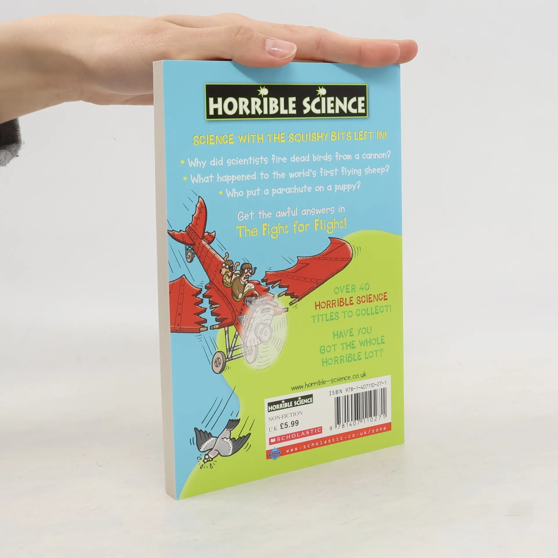 Science with the squishy bits left in! The Fearsome Fight for Flight will send you sky-high! Are you in a flap to discover: * who put a parachute on a puppy? * why scientists fire dead birds from cannon? * what happened to the world's first flying sheep? If you think you can stomach the sick side of Science, then read on as we go plane crazy. Laugh at some seriously silly flying stunts, find out which scientist was blown up in a balloon, and learn how to build a world-beating plane. With fantastic fact files, quirky quizzes and crazy cartoons The Fearsome Fight for Flight is a real high-flier! Science has never been so horrible!