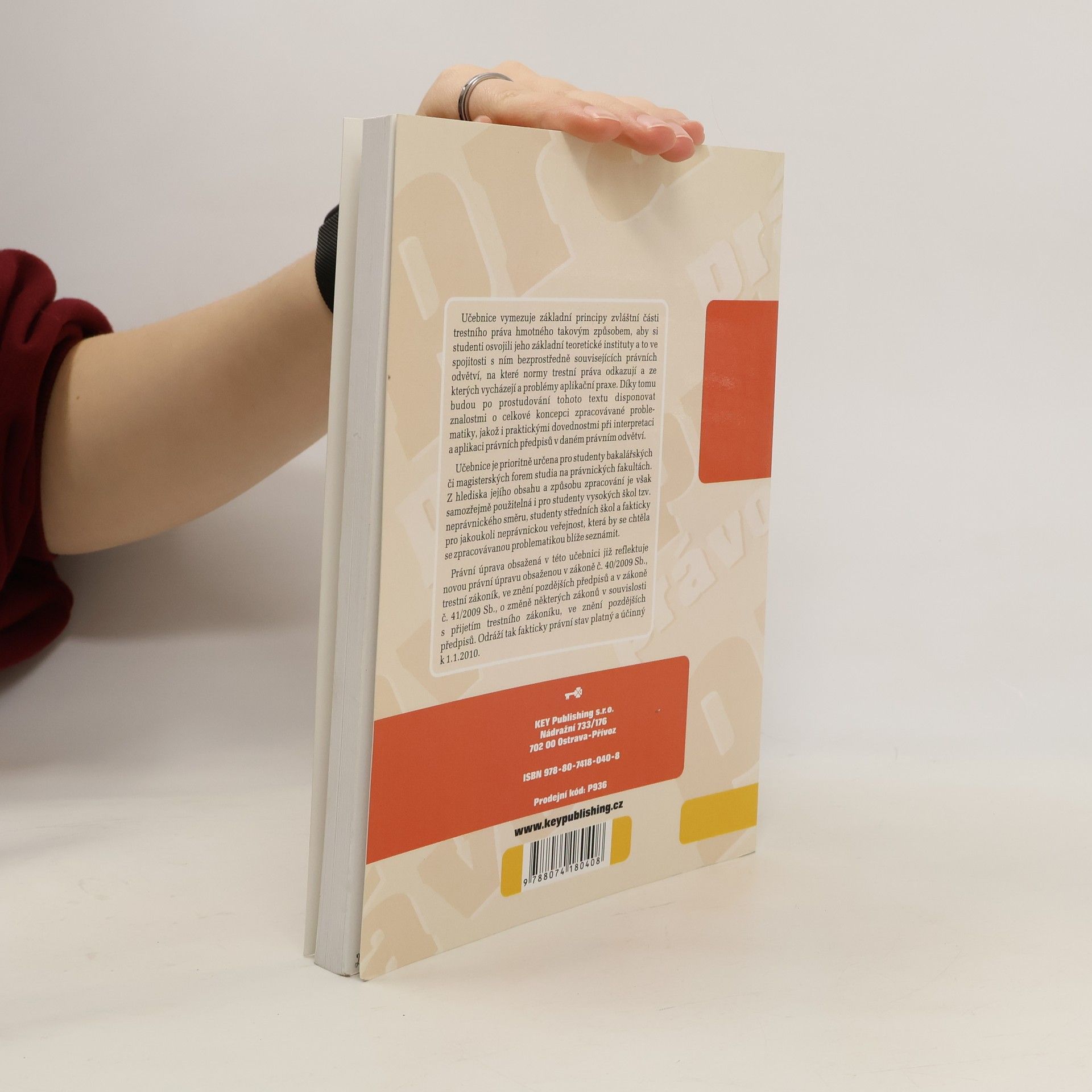 Učebnice vymezuje základní principy zvláštní části trestního práva hmotného takovým způsobem, aby si studenti osvojili jeho základní teoretické instituty a to ve spojitosti s ním bezprostředně souvisejících právních odvětví, na které normy trestního práva odkazují a ze kterých vycházejí problémy aplikační praxe. Díky tomu budou po prostudování tohoto textu disponovat znalostmi o celkové koncepci zpracovávané problematiky, jakož i praktickými dovednostmi při interpretaci a aplikaci právních předpisů v daném právním odvětví. Učebnice je prioritně určena pro studenty bakalářských či magisterských forem studia na právnických fakultách. Z hlediska jejího obsahu a způsobu zpracování je však samozřejmě použitelná i pro studenty vysokých škol tzv. neprávnického směru, studenty středních škol a fakticky pro jakoukoli neprávnickou veřejnost, která by se chtěla se zpracovávanou problematikou blíže seznámit. Právní úprava obsažená v následujícím textu odráží právní stav platný a účinný k 1. 9. 2012.