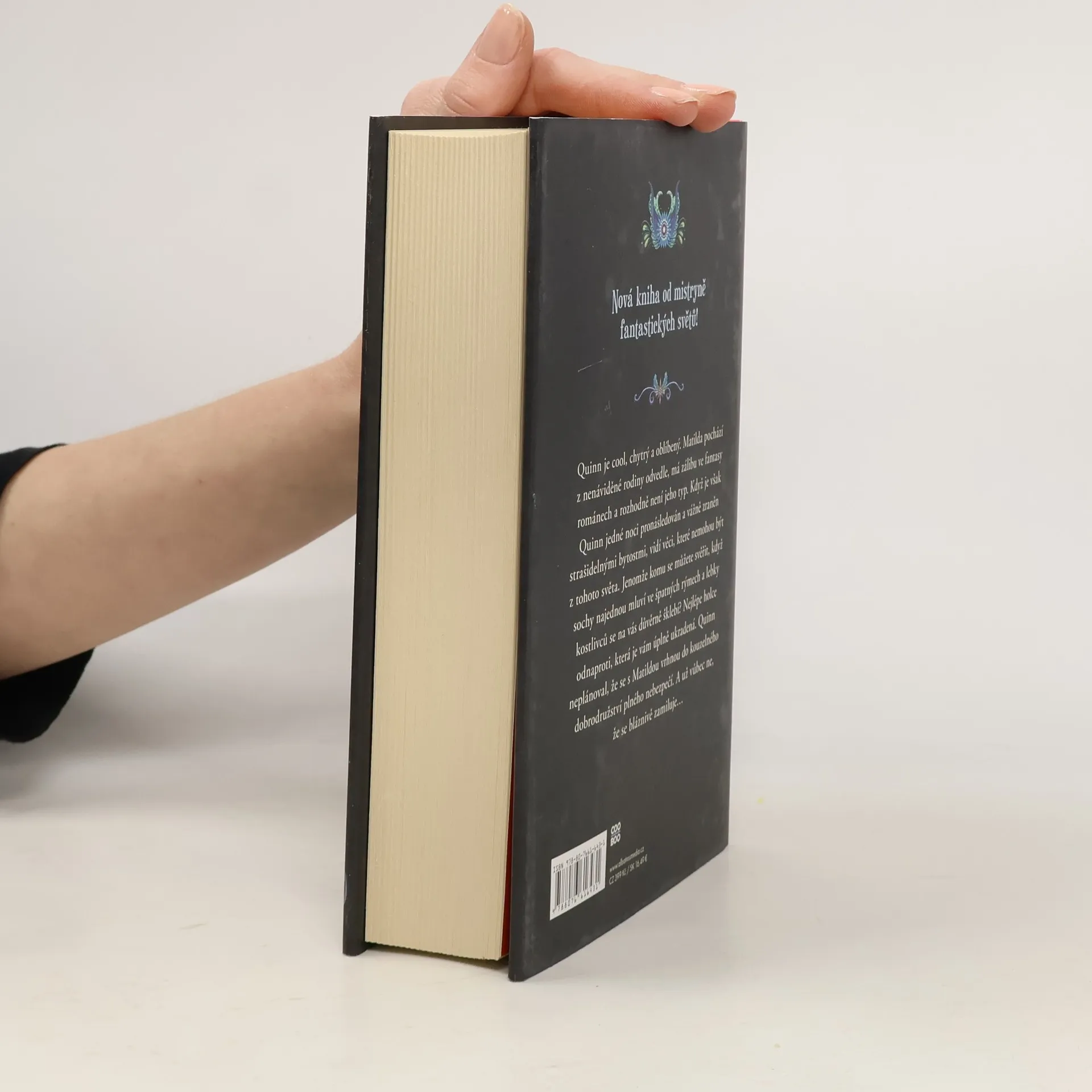 Okouzlující fantasy od autorky bestsellerové série Drahokamy. Quinn je cool a oblíbený. Matilda má nos věčně zabořený ve fantasy románech a rozhodně není jeho typ. Když však Quinna jedné noci napadnou strašidelné bytosti, spatří věci, které nejsou z tohoto světa. Komu se ale svěřit s tím, že se na vás šklebí lebky a sochy najednou mluví? Nejlépe holce odnaproti, která je vám úplně ukradená. Quinn neplánoval, že se s Matildou vrhne do nebezpečného kouzelného dobrodružství. A už vůbec ne, že se bláznivě zamiluje...