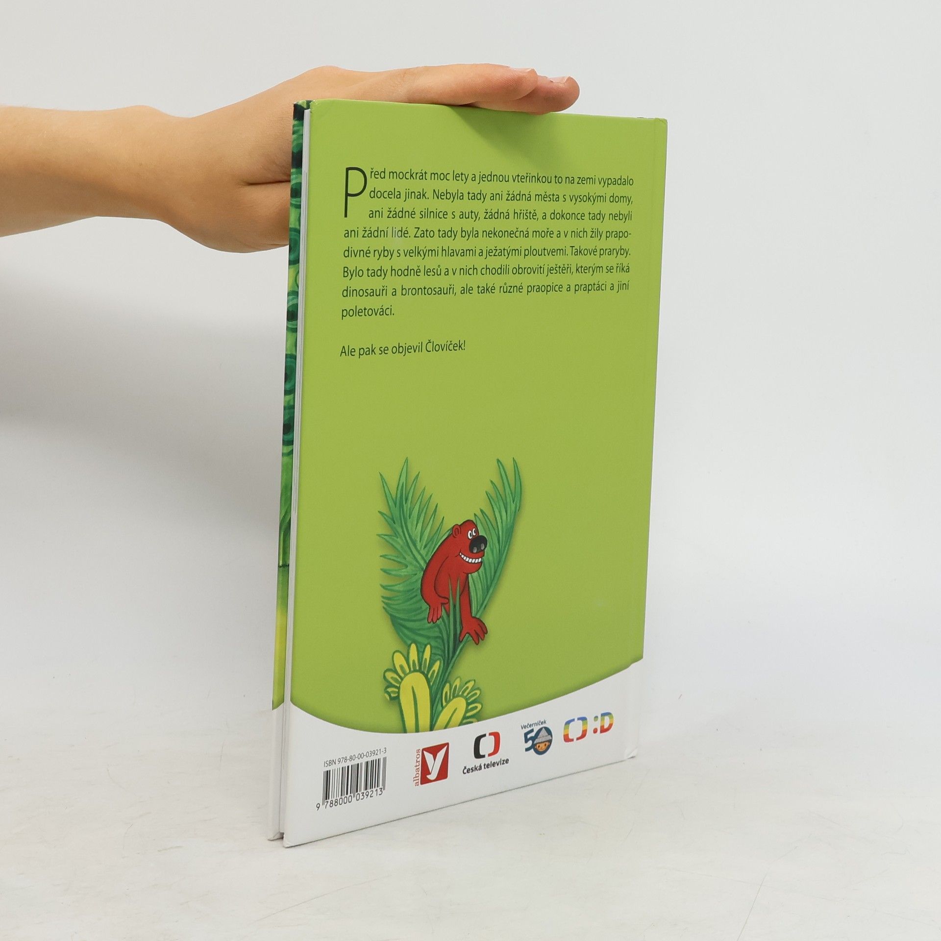 Před mockrát moc lety a jednou vteřinkou to na zemi vypadalo docela jinak. Nebyla tady ani žádná města s vysokými domy, ani žádné silnice s auty, žádná hřiště, a dokonce tady nebyli ani žádní lidé. Zato tady byla nekonečná moře a v nich žily prapodivné ryby s velkými hlavami a ježatými ploutvemi. Takové praryby. Bylo tady hodně lesů a v nich chodili obrovité ještěři, kterým se říká dinosauři brontosauři, ale také různé praopice a praptáci a jiní poletováci. Ale pak se objevil Človíček!