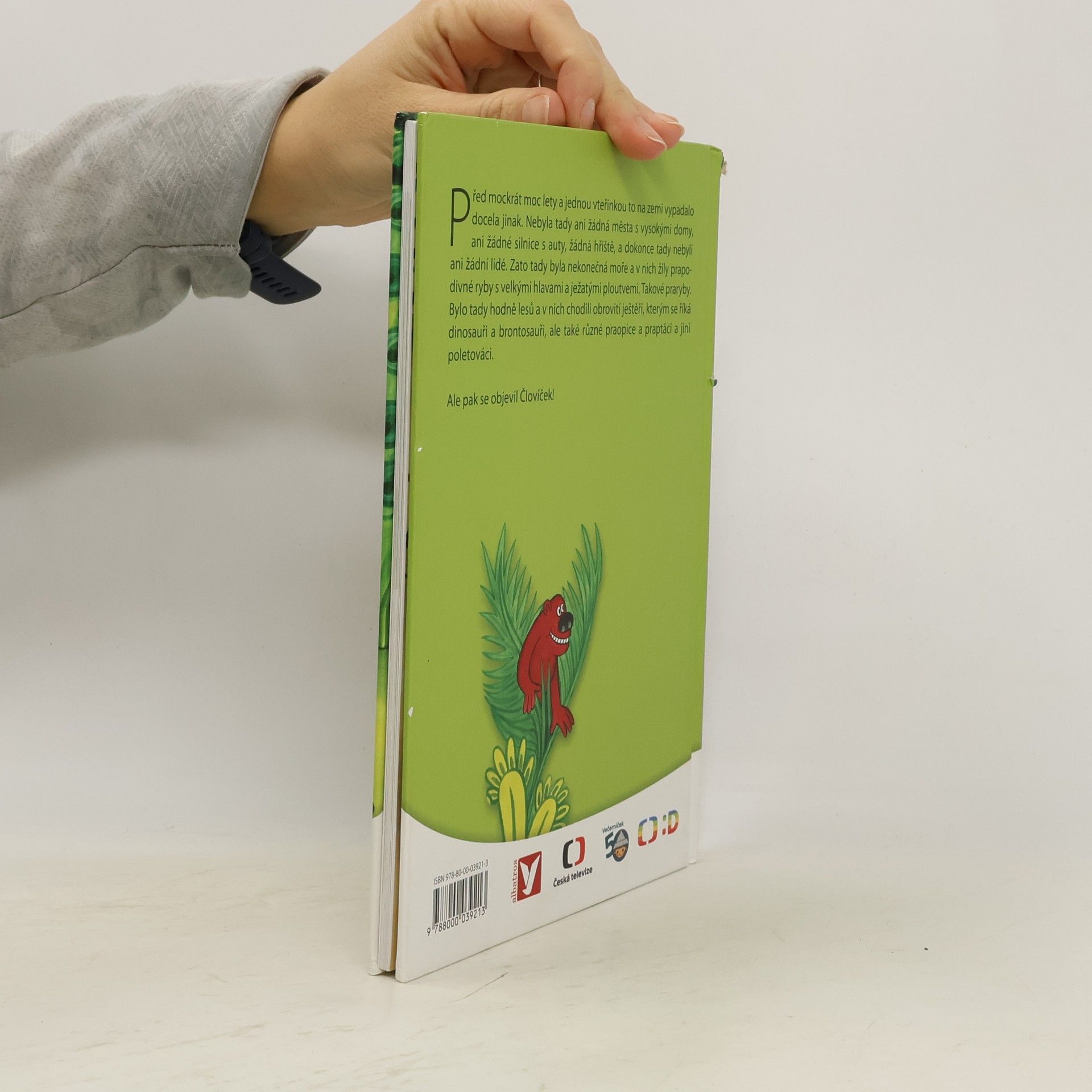 Před mockrát moc lety a jednou vteřinkou to na zemi vypadalo docela jinak. Nebyla tady ani žádná města s vysokými domy, ani žádné silnice s auty, žádná hřiště, a dokonce tady nebyli ani žádní lidé. Zato tady byla nekonečná moře a v nich žily prapodivné ryby s velkými hlavami a ježatými ploutvemi. Takové praryby. Bylo tady hodně lesů a v nich chodili obrovité ještěři, kterým se říká dinosauři brontosauři, ale také různé praopice a praptáci a jiní poletováci. Ale pak se objevil Človíček!