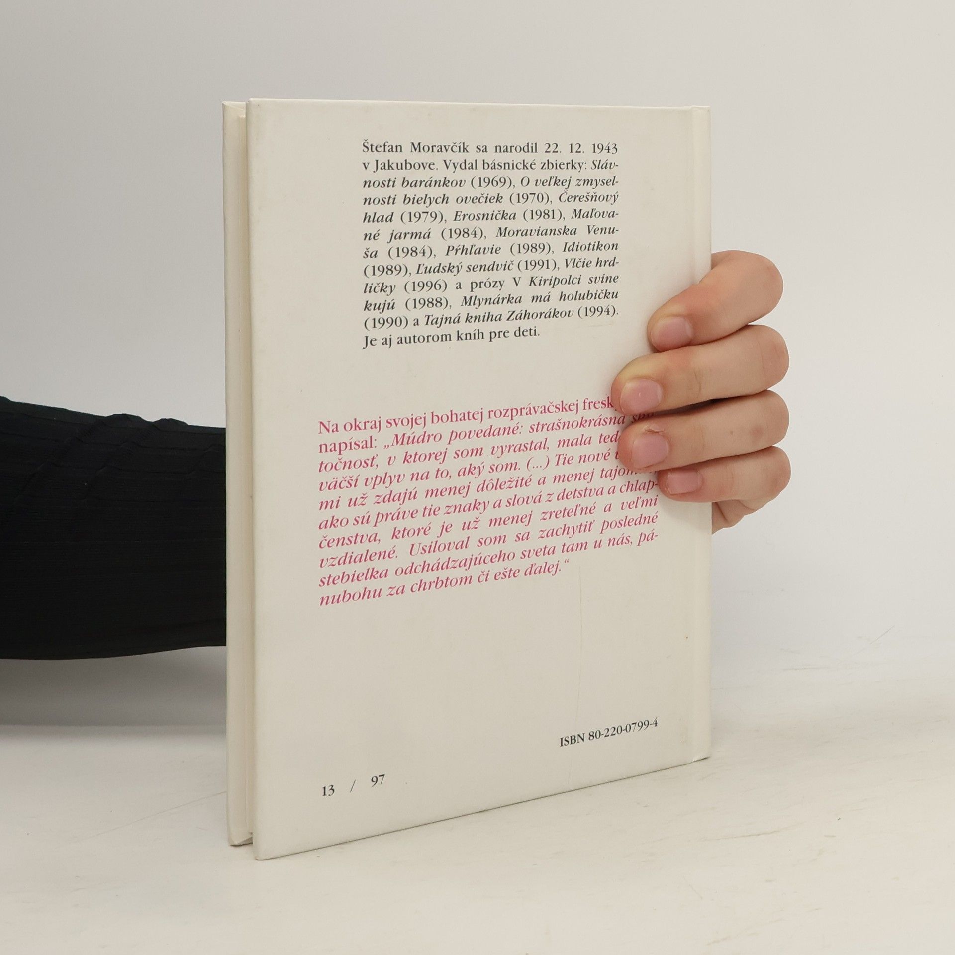 Na okraj svojej bohatej rozprávačskej fresky Moravčík napísal: "Múdro povedané: strašnokrásna skutočnosť, v ktorej som vyrastal, mala teda najväčší vplyv na to, aký som. (...) Tie nové veci sa mi zdaju menej dôležité a menej tajomné, ako sú práve tie znaky a slová z detstva a chlapčenstva, ktoré je už menej zreteľné a veľmi vzdialené. Usiloval som sa zachytiť posledné stebielka odchádzajúceho sveta tam u nás, pánubohu za chrbtom či ešte ďalej."