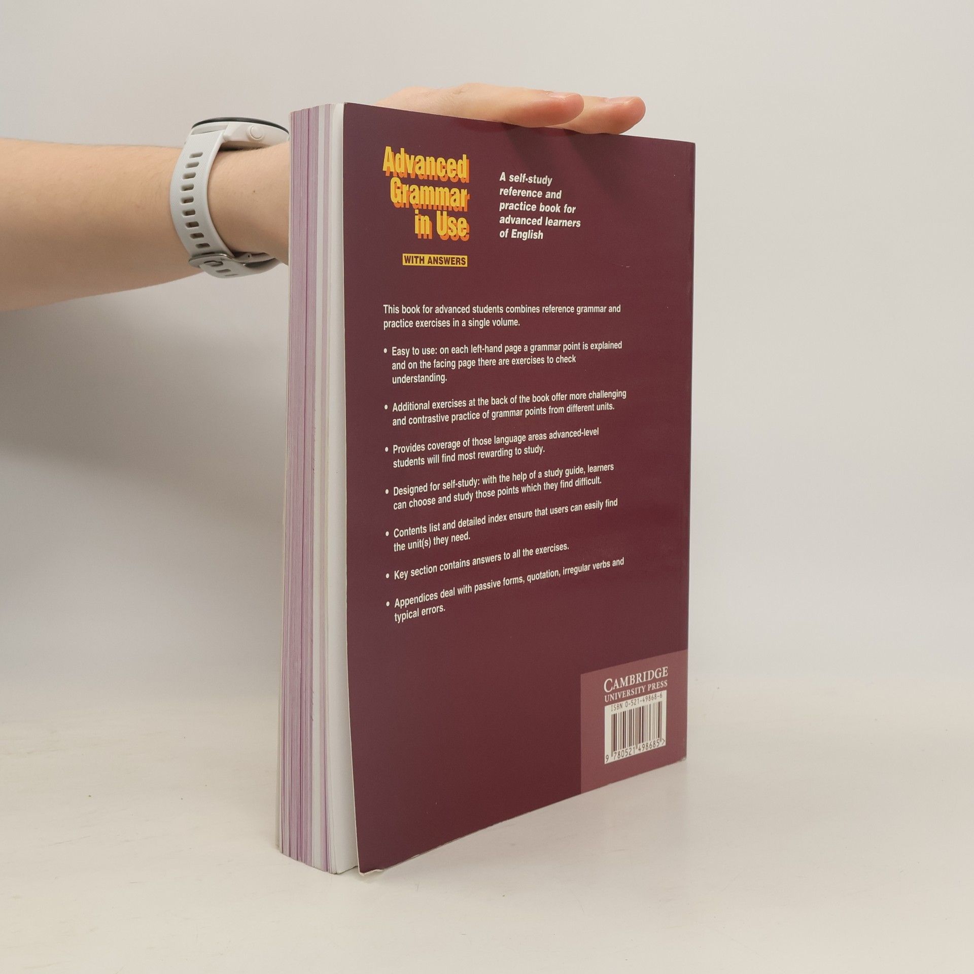 Advanced Grammar in Use contains 120 units of grammar explanation and practice exercises. It provides coverage of those language areas advanced-level students will find most rewarding to study. It retains the clarity of presentation of other books in the 'in Use' family. Two-page units present grammar explanation and examples, including typical student mistakes, on left-hand pages, and useful and varied practice on right-hand pages. Extra practice exercises at the back provide further challenging and contrastive practice of grammar points from different units. A study guide helps students find those areas most appropriate for their study. Grammar areas are cross-referenced throughout. There are useful appendices dealing with verb forms, and a glossary and all answers are given at the back.
