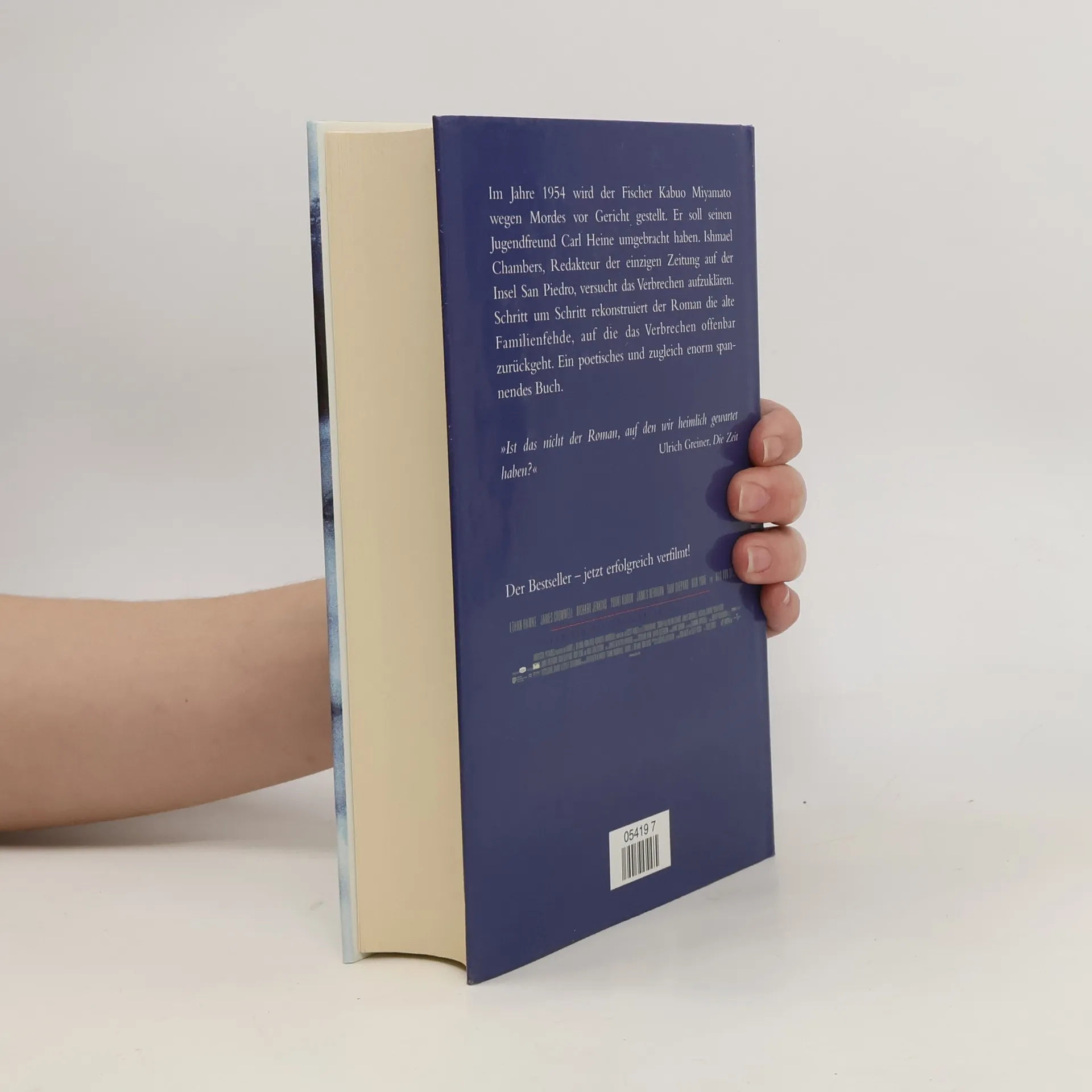 Der Roman spielt auf der Insel San Piedro nach dem Zweiten Weltkrieg. Ein mysteriöser Mordfall läßt alte Familienfehden, Jugendlieben und die im Weltkrieg entstandenen Spannungen zwischen der japanischen und angelsächsischen Inselbevölkerung wieder aufleben. Der Hauptverdächtige, gegen den alle Indizien sprechen, ist der japanische Lachsfischer Kabuo. Ishmael Chambers, Reporter, Redakteur und Herausgeber der einzigen Zeitung der Insel, versucht den Hergang des Verbrechens zu rekonstruieren. Wie der stetig fallende Schnee die Landschaft verändert, so verdichten sich Hinweise und Indizien, bis am Ende von Chambers' geduldiger Suche die Wahrheit steht.