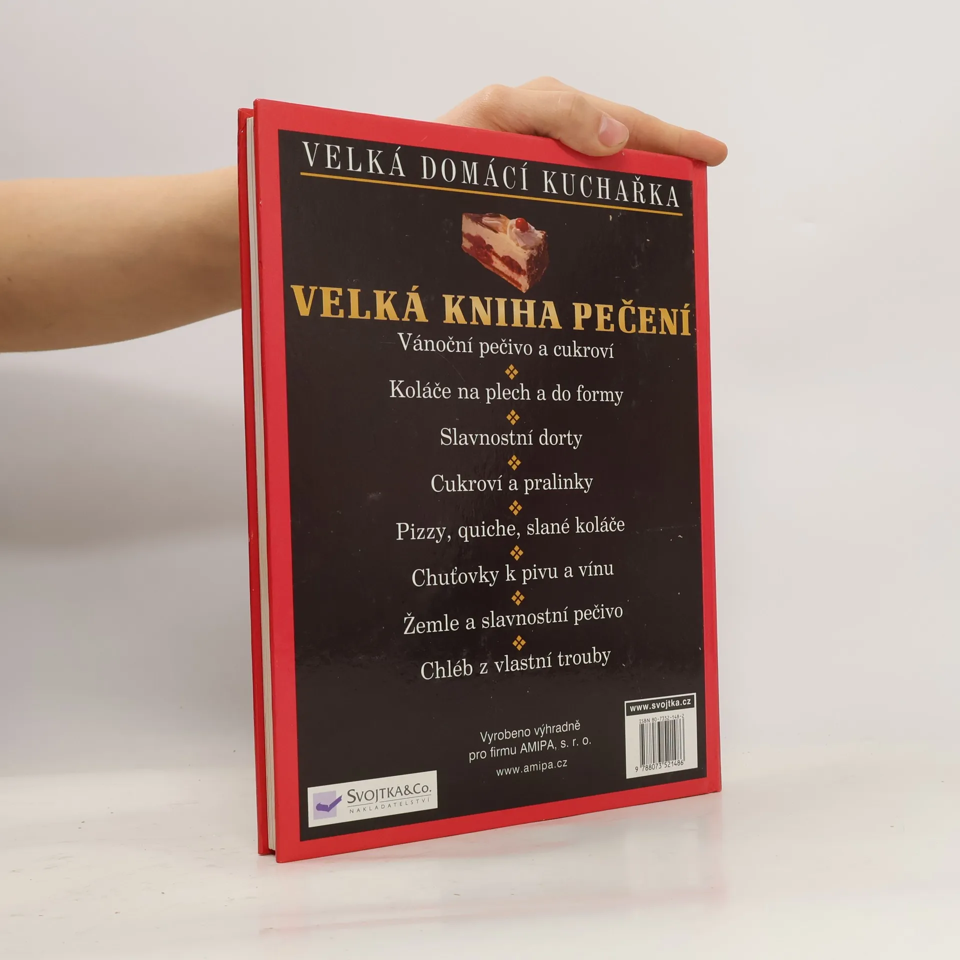 V této kuchařce najdeme recepty na vánoční pečivo a cukroví, koláče na plech a do formy, slavnostní dorty, cukroví a pralinky, pizzy, quiche, slané koláče, chuťovky k pivu a vínu, žemle a slavnostní pečivo. Každy recept je doprovázen barevným vyobrazením. Užitečné jsou i podrobné návody na jednotlivé druhy těst.