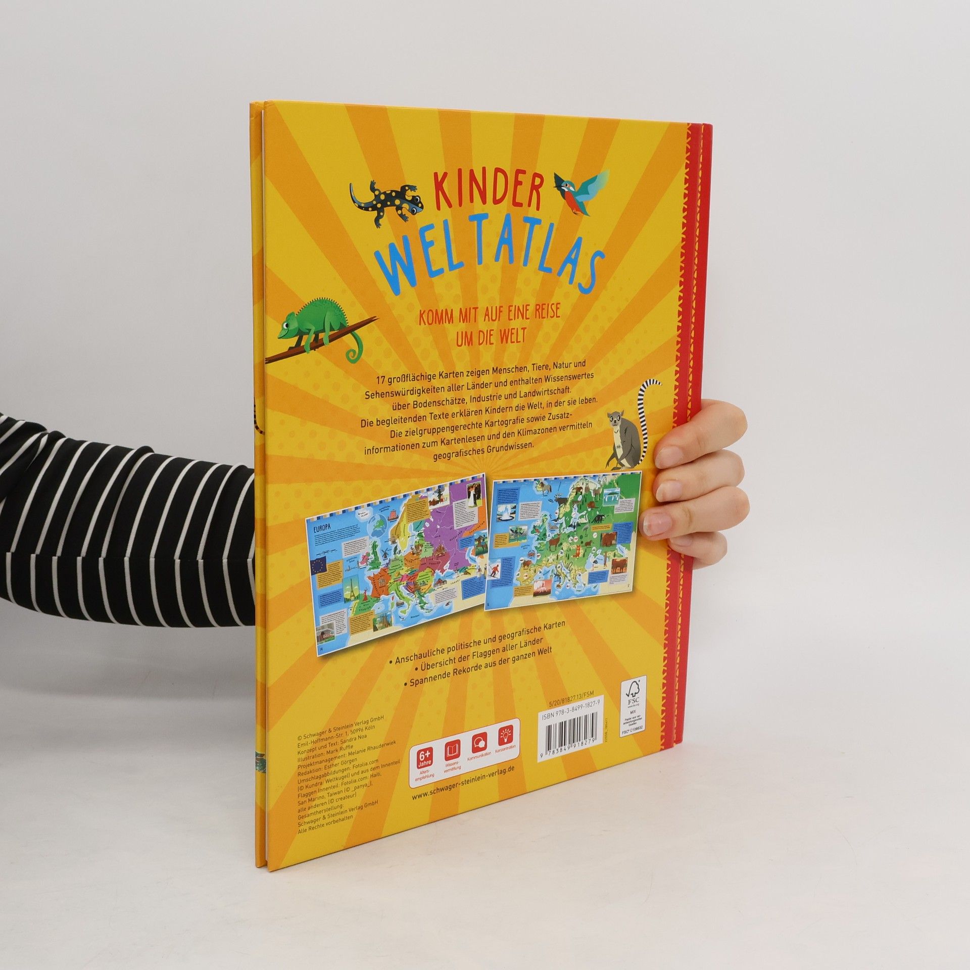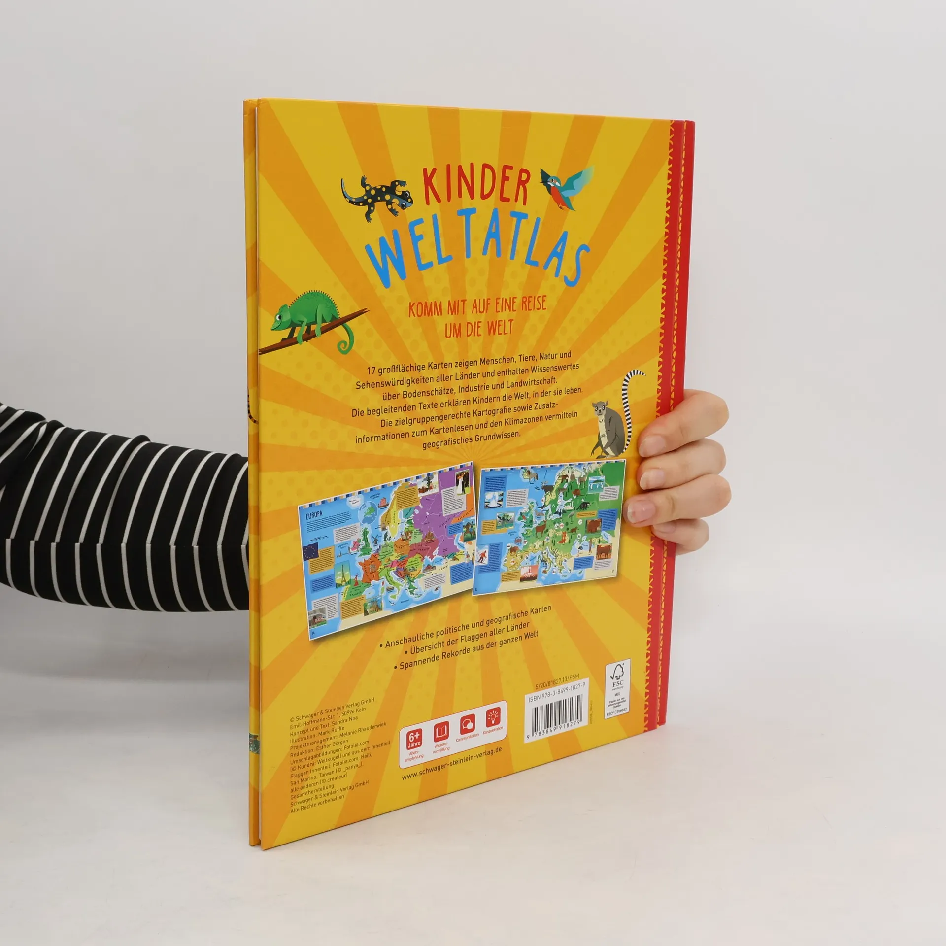 "17 großflächige Karten zeigen Menschen, Tiere, Natur und Sehenswürdigkeiten aller Länder und enthalten Wissenswertes über Bodenschätze, Industries und Landwirtschaft. Die begleitenden Texte erklären Kindern die Welt, in der sie leben. Die zielgruppengerechte Kartografie sowie Zusatz-inofrmationen zum Kartenlesen und den Klimazonen vermitteln geografisches Grundwissen. "--Back cover.