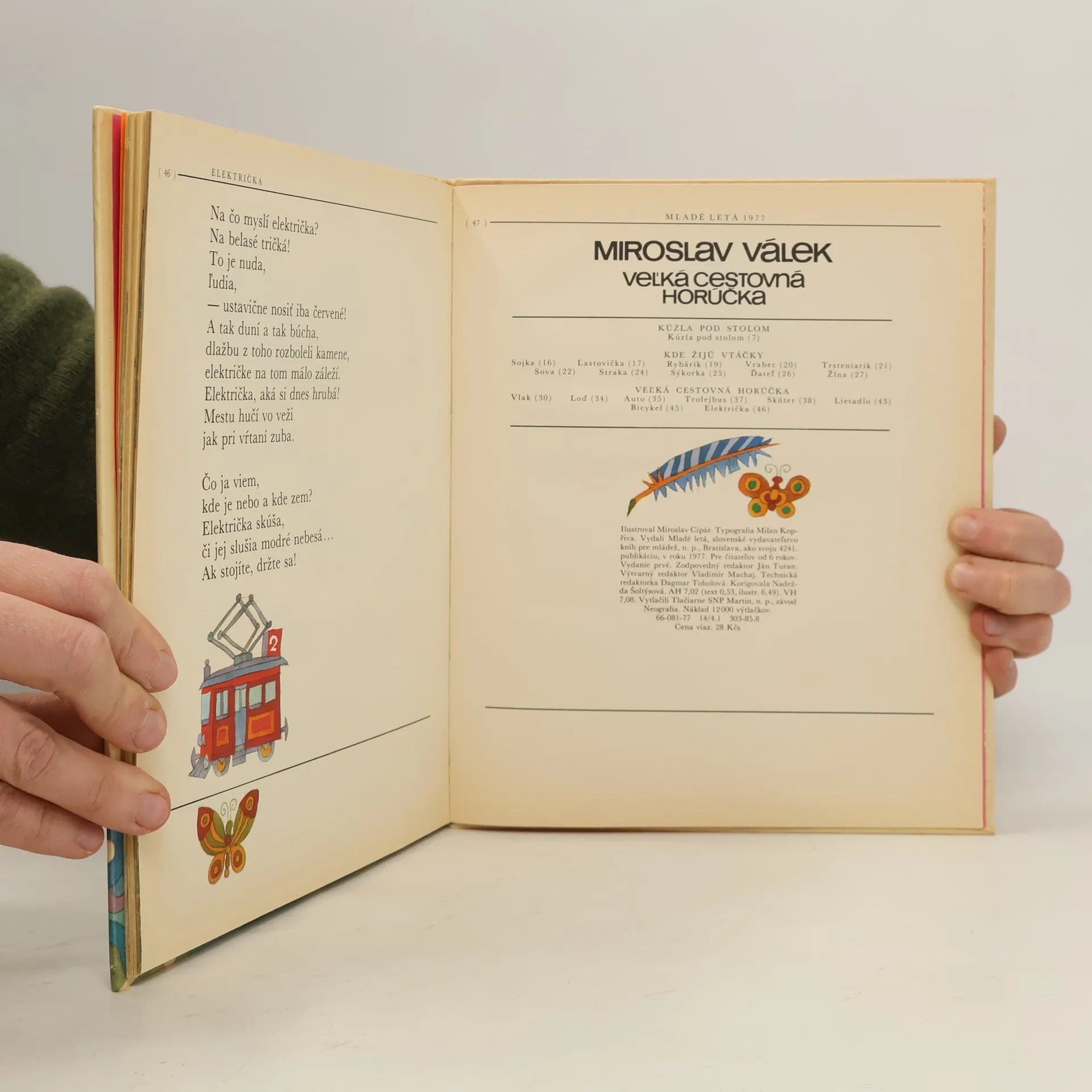 V zbierke ôsmich básnických variácií na moderné dopravné prostriedky Veľká cestovná horúčka pre malých cestovateľov dominuje fantazijnosť a poetické videnie skutočnosti.