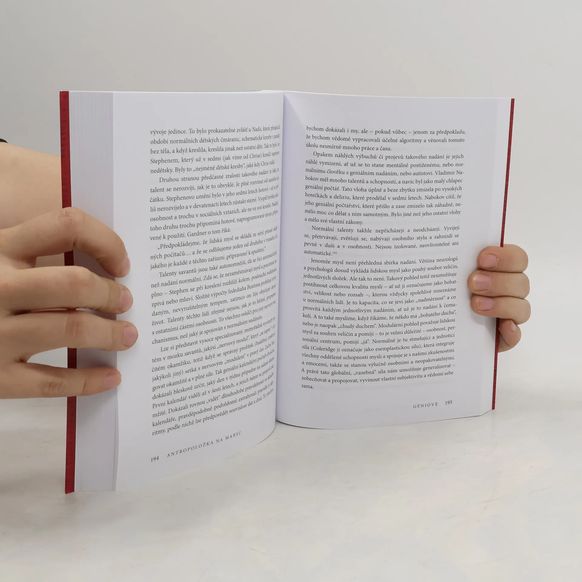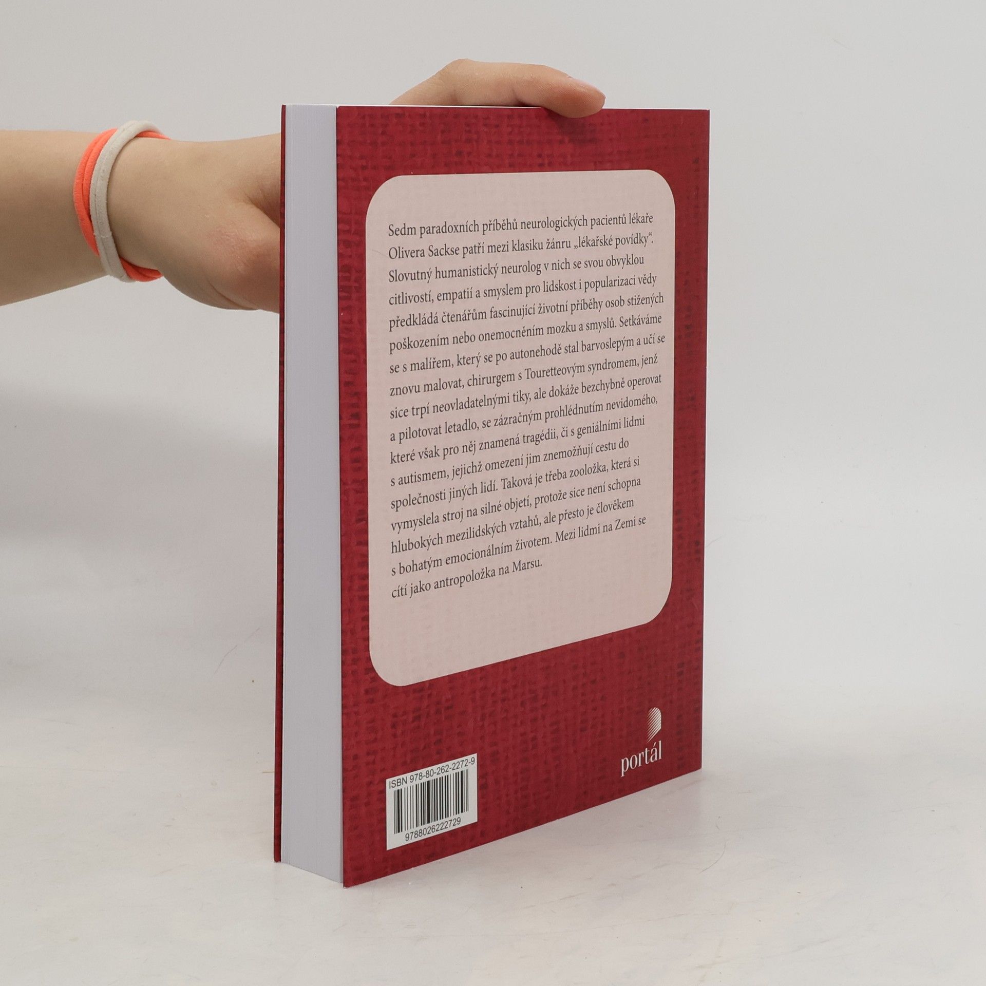Lékař neurolog vypráví o sedmi zvláštních pacientech, postižených autismem, barvoslepostí, Tourettovým syndromem a dalšími neurologickými poruchami. Jejich příběhy vypráví s velkým lidským i odborným zaujetím, své pacienty vnímá jako jedinečné bytosti, které dokázali čelit svému osudu.