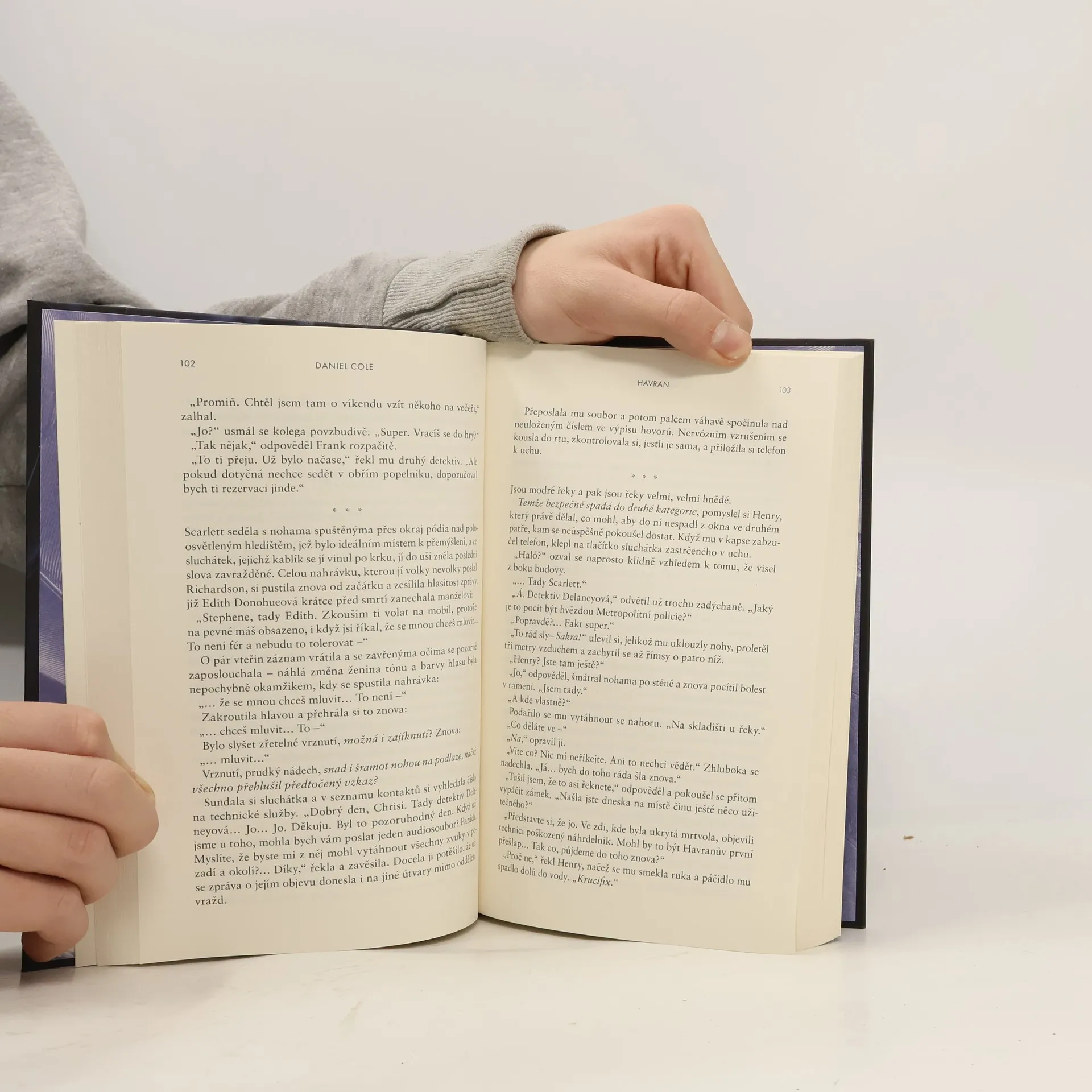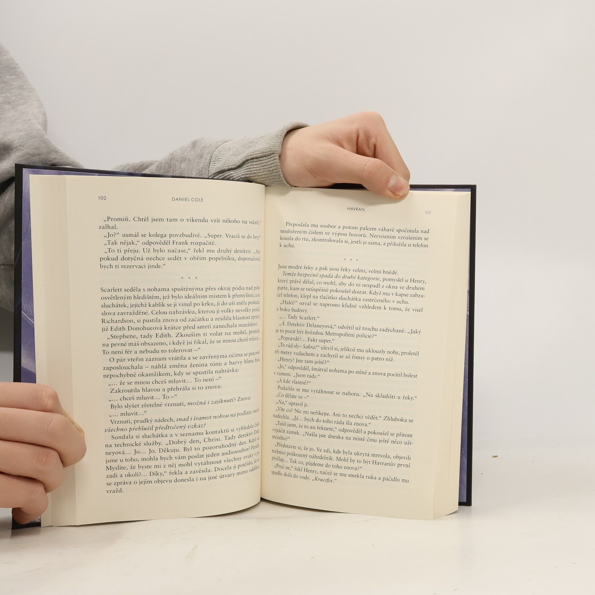 Žhavá, zábavná a neodložitelná novinka od autora bestselleru Hadrový panák. Ctižádostivá vyšetřovatelka. Okouzlující zabiják… a jejich dobrodružný hon na sériového vraha. Detektiv Scarlett Delaneyová se snaží dopadnout zločince přezdívaného Havran, jenž svým obětem uřízne hlavu, na obličeji zanechá pět škrábanců a odnese si šperk jako suvenýr, to vše za nejnemožnějších okolností. Je nepolapitelný a policie dlouho tápe, dokud Scarlett na jednom místě činu náhodou nenarazí na šarmantního Henryho, který tvrdí, že pracuje jako soukromé očko, a nabídne jí pomoc. Kamkoli se ale Henry vrtne, zůstávají po něm mrtvoly. A Havranova další akce je na spadnutí…