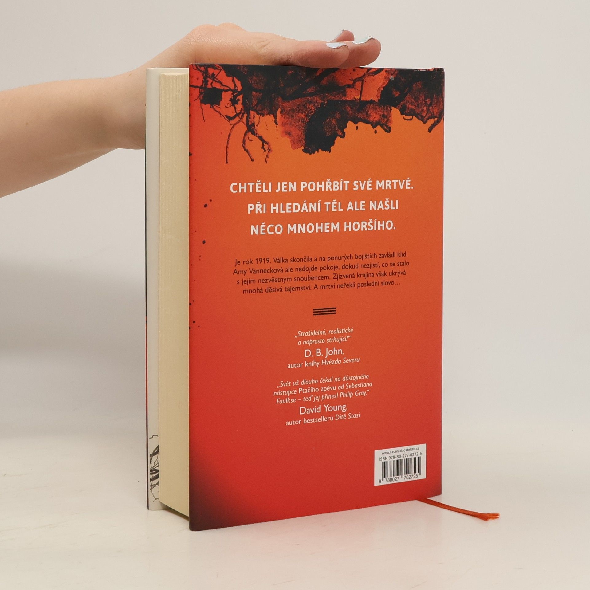 Historický thriller, odehrávající se v roce 1919, s plnou silou a neúprosností připomíná krutosti Velké války. Na pustých bojištích severní Francie utichla děla první světové války. Zvláštní oddíly nyní čelí nebezpečnému úkolu: hledají mrtvé pro hromadné pohřby. Kapitán Mackenzie, který sám válku přežil, se musí postarat, aby se těla jeho padlých spolubojovníků našla a byla uložena k odpočinku. Mezi ztracenými vojáky je i snoubenec Amy Vanneckové, která se odmítá smířit s tím, že se jeho tělo možná nikdy nenajde. Na povrch začíná prosakovat temná pravda a Mackenzie i Amy jsou zataženi do pátrání po psychopatovi, pro nějž zvěrstva v Two Storm Wood nejsou konec, nýbrž pouhý začátek. Nakladatelská anotace. Kráceno.