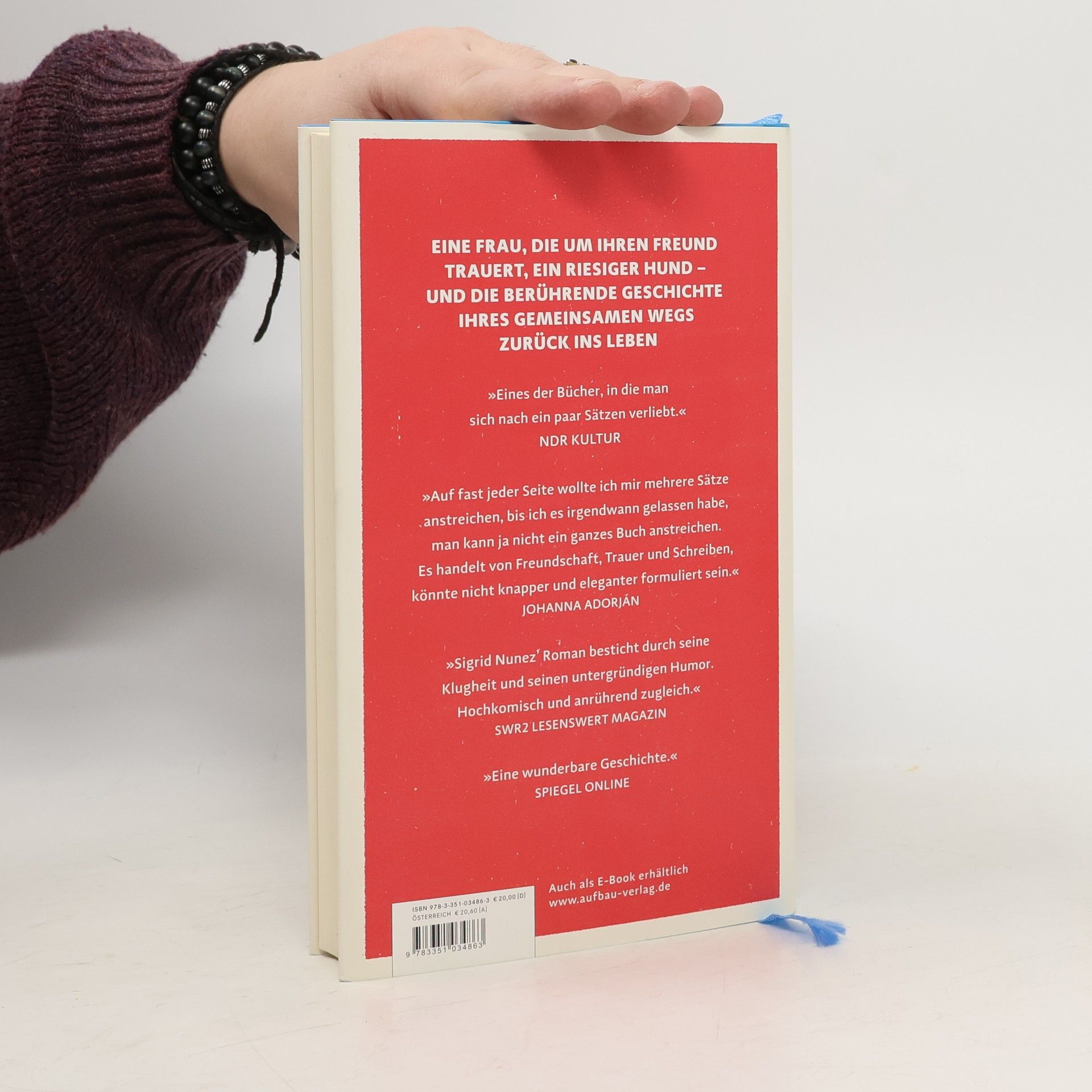 Eine Frau trauert um ihren Freund und findet Trost in der unerwarteten Verantwortung für dessen riesigen Hund, Apollo, eine achtzig Kilo schwere Dogge. Obwohl ihr Apartment zu klein ist und Hunde in ihrem Mietshaus verboten sind, kann sie nicht ablehnen und nimmt ihn auf. Gemeinsam kämpfen sie gegen ihre Trauer und finden allmählich den Weg zurück ins Leben. Der Roman thematisiert Liebe, Freundschaft und die heilende Kraft des Erzählens sowie die besondere Verbindung zwischen Mensch und Hund. Die Autorin Sigrid Nunez schafft es, auf jeder Seite tiefgehende Einsichten zu vermitteln, die das Lesen zu einem bereichernden Erlebnis machen. Ihre Erzählweise ist elegant und prägnant, und sie behandelt Themen wie Freundschaft, Trauer und das Schreiben mit einer ruhigen, weisen Stimme. Nunez' Stil ist sowohl direkt als auch musikalisch, was ihre Intelligenz und Lebensklugheit unterstreicht. Kritiker heben hervor, dass das Buch nicht nur lehrt, sondern auch das Verständnis für Achtsamkeit fördert. Nunez hat sich mit diesem Werk als bedeutende Stimme der amerikanischen Gegenwartsliteratur etabliert.