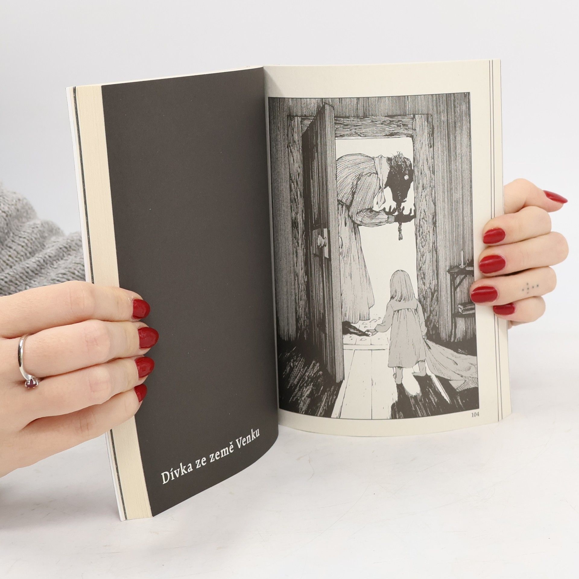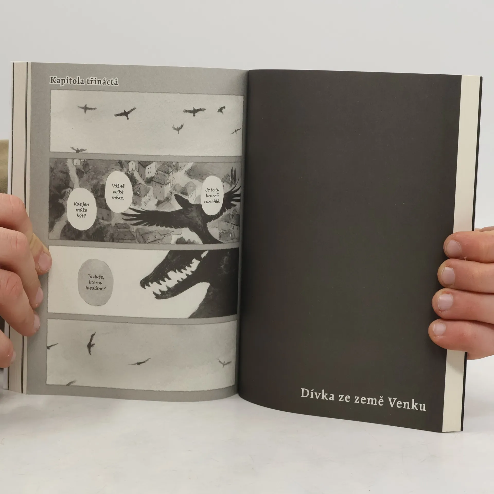 Kdysi dávno byly dvě země, oddělené od sebe vysokou zdí. Země Uvnitř, kde žili lidé, a země Venku, obývaná prokletými bytostmi. Prokletí se šířilo dotykem – a tak každého, kdo vkročil dozemě Venku, čekal přísný trest. I přes to však v zemi Venku žila malá dívenka jménem Šiva. Nebyla sama – starala se o ni prokletá bytost, pan učitel. Ti dva se nesměli dotknout, avšak poutalo je k sobě více, než by se na první pohled mohlo zdát. Dívenka ze země Venku je melancholický fantasy komiks plný bohaté představivosti a temných prvků. Vymyká se současné japonské komiksové produkci jak grafickým zpracováním, tak citlivým příběhem, který čtenáře záhy pohltí. Dětská zvídavost hlavní hrdinky odhaluje svět plný podivných bytostí a lidí, jejichž pohnuté osudy a strach z prokletí prověří, kam až sahá dojemné přátelství Šivy a jejího ochránce. Šiva má ohromnou radost ze setkání s tetičkou, o níž si už myslela, že ji znovu neuvidí. Avšak směrem, kterým se vydaly, se rozléhá pouze temná nekonečná cesta. Jaký osud čeká dívenku na cestě domů, dlážděné kameny, v nichž se odráží koňské ržání a chladné, tiché hlasy? Příběh dvou, dívky a bytosti, chycených v hluboké průrvě, která odděluje noc a den…