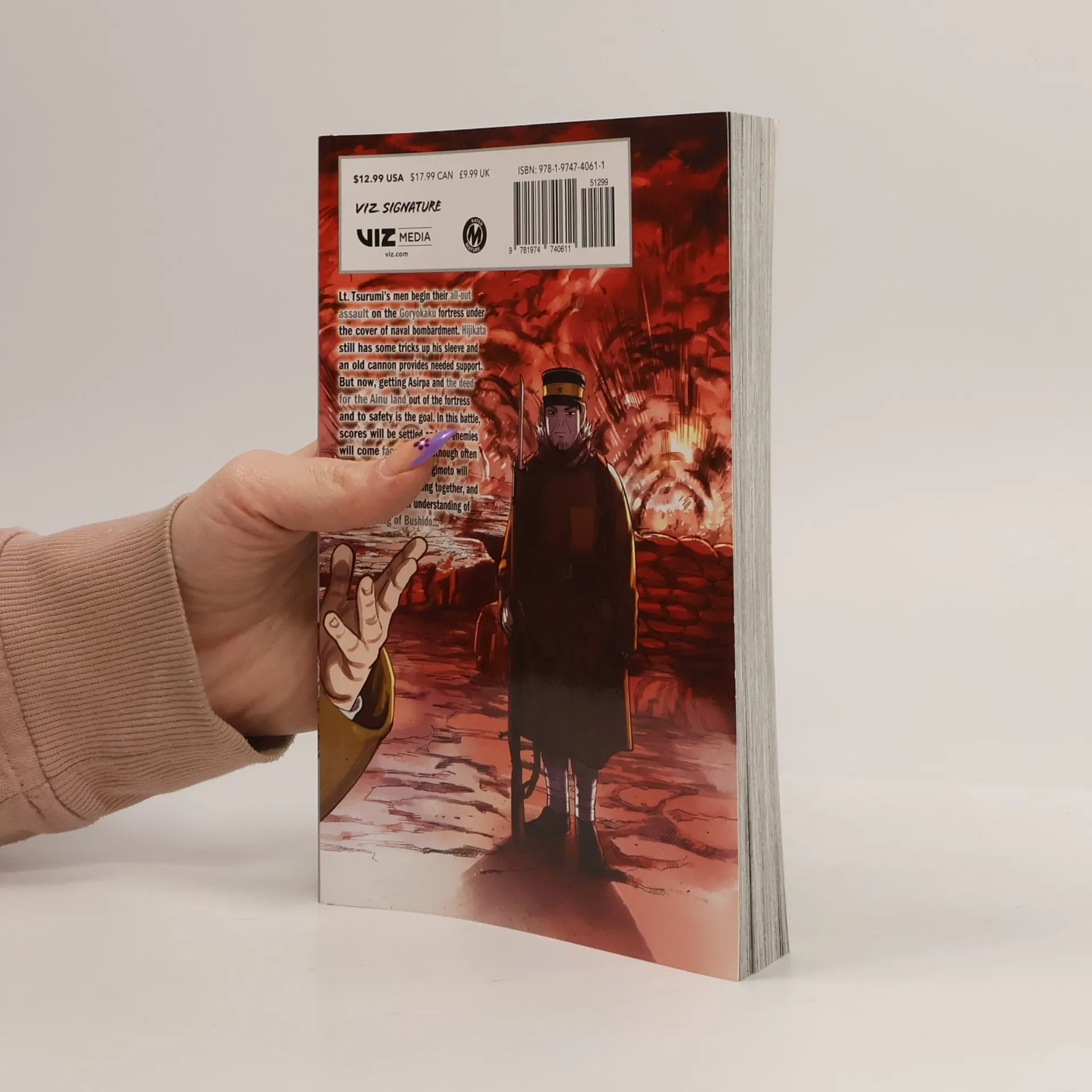 A tale of high adventure and survival! In the early twentieth century, Russo-Japanese War veteran Saichi Sugimoto searches the wilderness of Hokkaido for a hoard of hidden gold. With only a cryptic map and a native Ainu girl to help him, Saichi must also deal with every murderous cutthroat, bandit and rogue who knows about the treasure! Lieutenant Tsurumi's men begin their all-out assault on the Goryokaku Fortress under the cover of naval bombardment. Hijikata still has some tricks up his sleeve and an old cannon provides needed support. But now, getting Asirpa and the deed for the Ainu land out of the fortress and to safety is the goal. In this battle, scores will be settled and old enemies will come face-to-face. Although often at odds, Hijikata and Sugimoto will find themselves fighting together, each with their own understanding of the meaning of bushido...