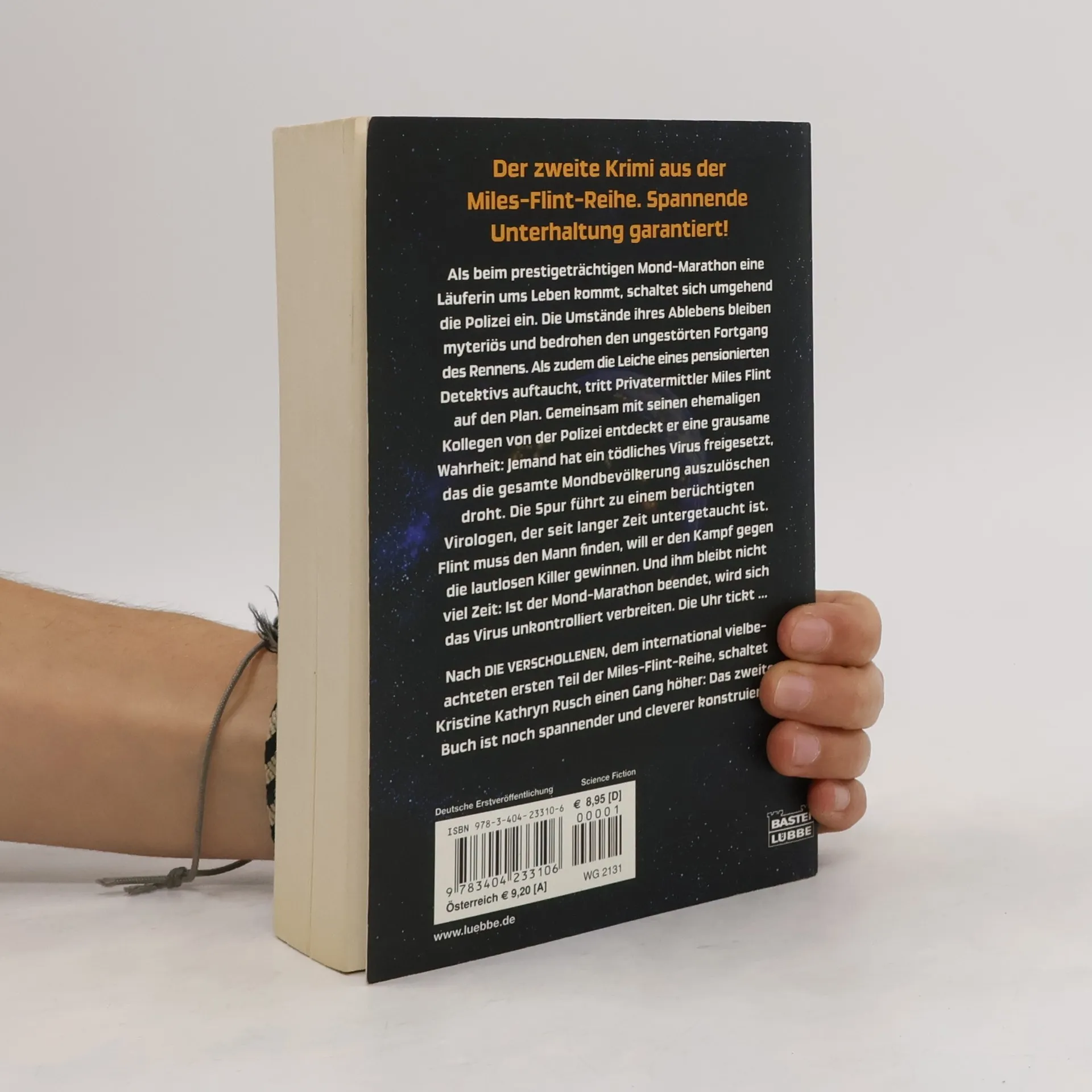 Beim Mond-Marathon stirbt eine Läuferin unter mysteriösen Umständen, was die Polizei alarmiert. Als die Leiche eines pensionierten Detektivs auftaucht, wird Privatermittler Miles Flint aktiv. Gemeinsam mit Ex-Kollegen entdeckt er ein freigesetztes Virus, das die Mondbevölkerung bedroht. Die Uhr tickt... Der zweite Krimi der Miles-Flint-Reihe.
