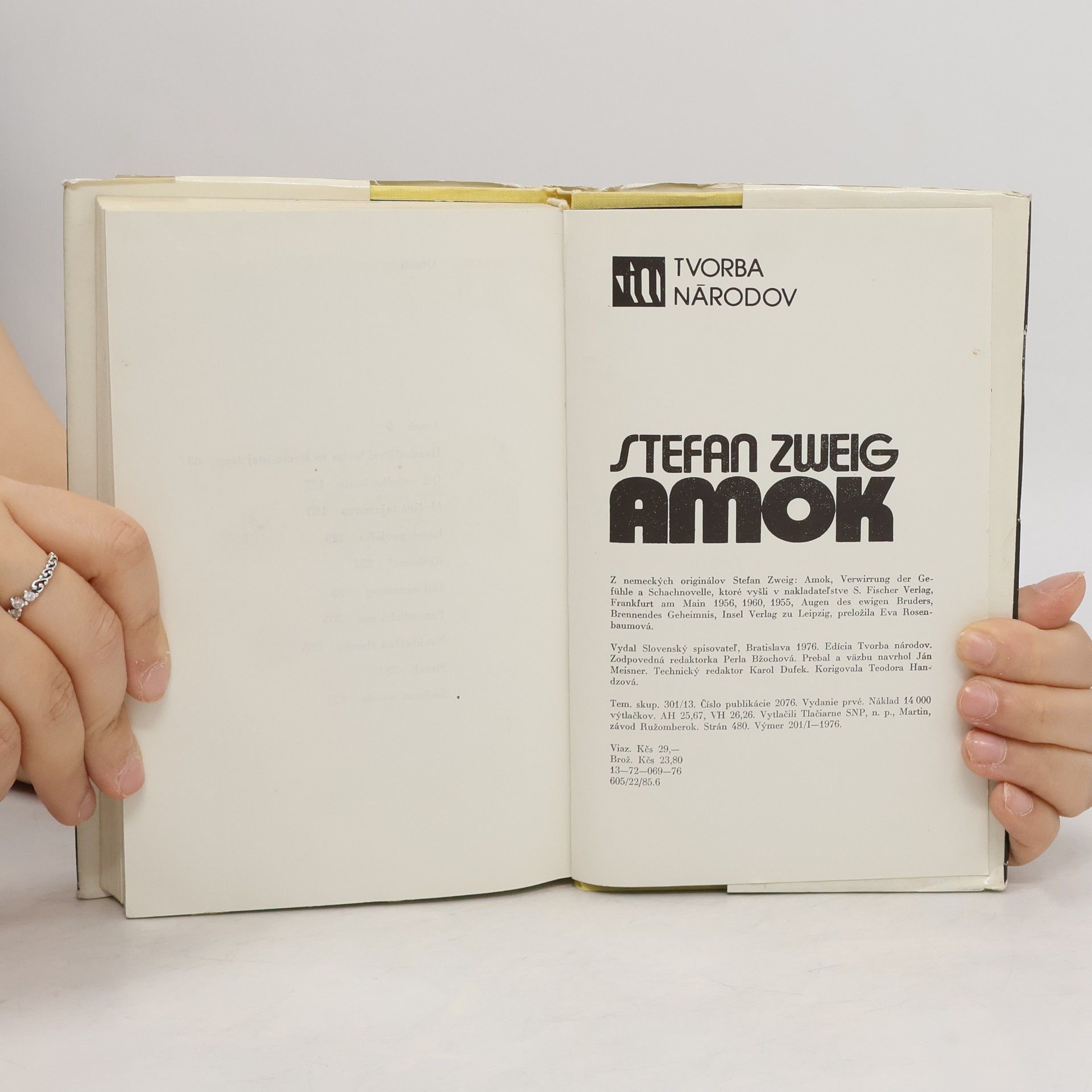 Novely: Amok, Dvadsaťštyri hodín zo života istej ženy, Oči večného brata, Mučivé tajomstvo, Letná novielka, Knihomoľ, List neznámej, Fantastická noc, Neviditeľná zbierka, Strach, Šachová novela. Vyšlo v edícii Tvorba národov.