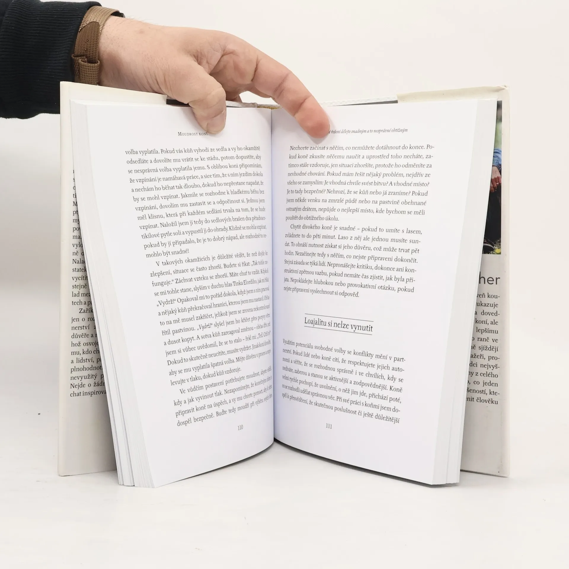 Všechno, co v životě opravdu potřebujete znát, se můžete naučit od koní.„Před koňmi nic neskryjete, mají vůči nám takovou úroveň citlivosti, jakou nemáme ani jeden pro druhého,“ říká zaříkávač koní a kouč Grant Golliher. Během své dlouholeté zkušenosti s prací s koňmi získal velké množství poznatků o komunikaci, nastavení hranic, férovosti, důvěře a respektu, které se týkají nejen koní, ale i lidí. K tomu, abychom druhým věnovali pozornost a chovali se k nim s citem, nepotřebujeme žádnou speciální dovednost ani kvalifikaci. Potřebujeme pokoru a ochotu učit se. Máme sklon nechat se snadno rozptýlit nebo se ponořit do vlastních myšlenek a pocitů. Unikají nám nápovědy, které máme přímo před očima. Nebo pokud si jich všimneme, vyložíme si je špatně, protože se na ně díváme filtrem vlastních emocí. Naladit se na druhé a věnovat jim dostatek pozornosti, abychom dokázali vycítit, co se děje pod povrchem, je stejně přirozené a odvěké jako soulad mezi koňmi, lidmi na jejich hřbetech a přírodou. Zaříkávání koní není magie. Jde jen o rozvíjení dobrovolného partnerství založeného na vzájemné důvěře a respektu. Jde o přístup, jehož osvojení bude k užitku každému, kdo chce lépe porozumět lidem a lidství, překonat trauma, zažívat plnohodnotnější vztahy a uvolnit nevyužitý potenciál svého života. Nejde o žádná kouzla. Stačí myslet jako kůň.