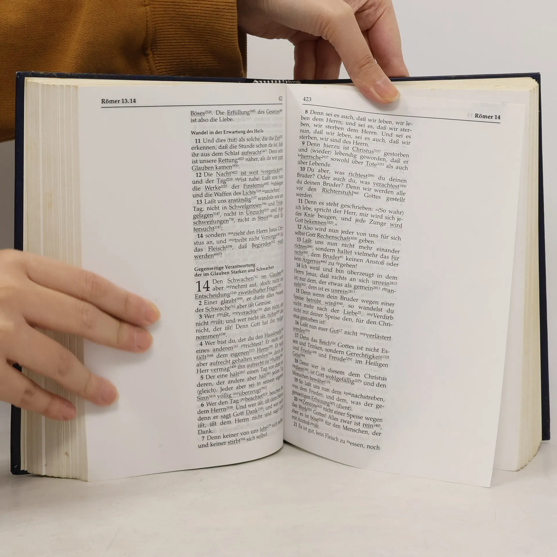 Die Elberfelder Studienbibel mit Sprachschlüssel bietet Ihnen einen einzigartigen Zugang zu den Übersetzungsmöglichkeiten des biblischen Grundtextes, unabhängig von Ihren Vorkenntnissen. Sie enthält den Text der Elberfelder Bibel Revision 2006 und ermöglicht das Nachschlagen der vollständigen Bedeutungen vieler Wörter im Grundtext. Ein Nummernsystem führt zu den hebräischen und griechischen Grundwörtern im Anhang. Diese einspaltige Ausgabe beinhaltet zudem eine integrierte Handkonkordanz, die alle wesentlichen Worte und Namen der Elberfelder Bibel 2006 erfasst und die entsprechenden Bibelstellen in ausreichendem Umfang bereitstellt. So können Sie über 40.000 Bibelstellen und fast 6.000 Begriffe problemlos erschließen. Ergänzt wird die Studienbibel durch 16 farbige Zeittafeln zu Alten und Neuen Testamenten sowie durch Landkarten und Pläne, die sie zu einem wertvollen Werkzeug für Ihre Bibelarbeit machen. Diese Ausgabe bietet die genaueste Übersetzung der Heiligen Schrift und umfasst über 600 Seiten Studienteil mit einem Sprachschlüssel für das Alte und Neue Testament. Fast 15.000 Wörter werden nach ihrer hebräischen und griechischen Grundbedeutung aufgeschlüsselt, und das Grundtextstudium ist auch ohne Sprachkenntnisse möglich. Zudem finden Sie über 400 Seiten Wortkonkordanz sowie übersichtliche farbige Landkarten und Zeittafeln im Anhang.