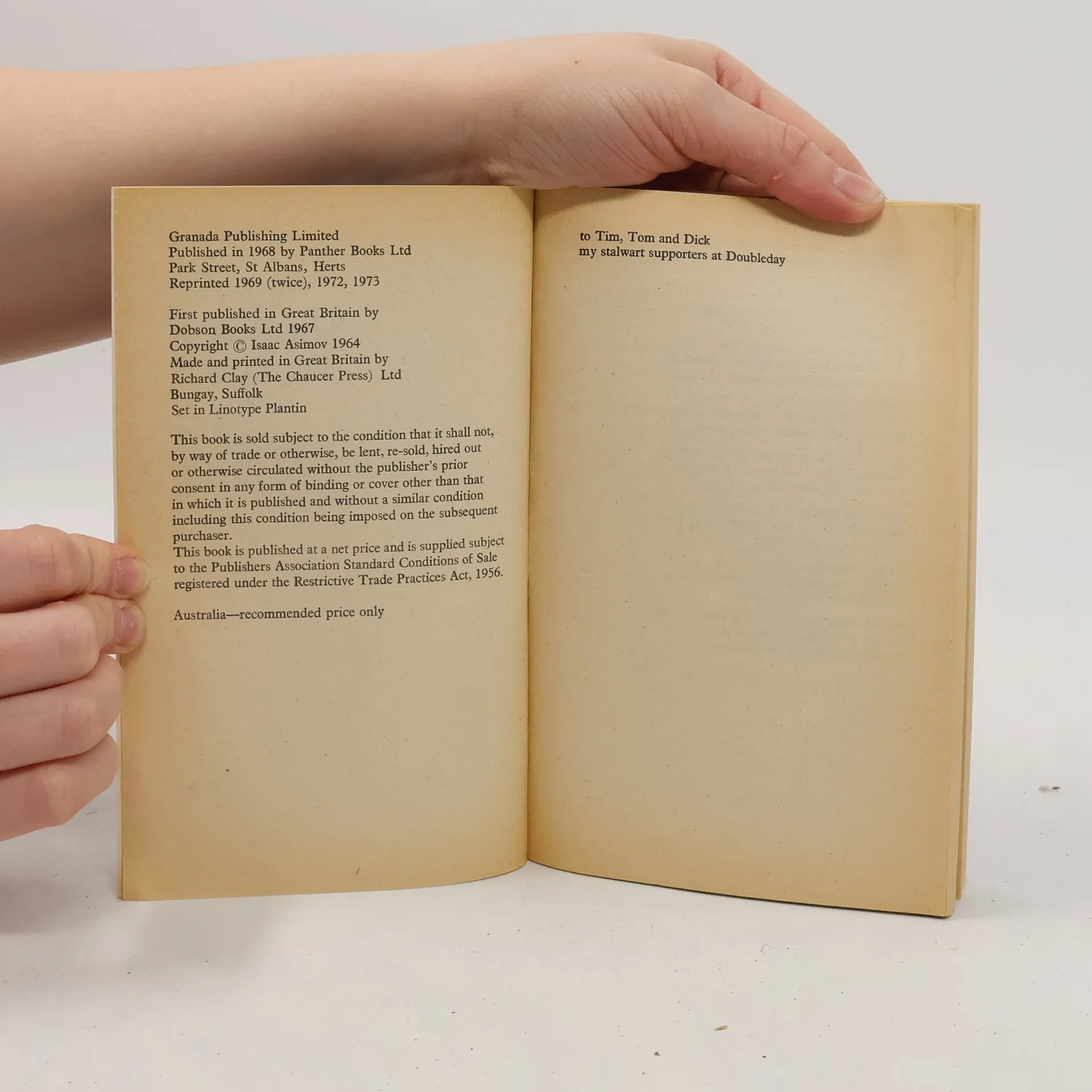 ROBOT TONY is the first robot designed to perform domestic duties by the US Robots and Mechanical Men Corporation. Is it Tony's fault that the lady of the house where he's field tested falls in love with him?ROBOT AL was intended for shipment to a mining outfit on the moon. Instead, he's loose in the mountains of Virginia...building from scraps of junk his very own, very dangerous disintegrator.ROBOT LENNY answers workaday questions in babytalk. So why is Dr Susan Calvin, the world's top robopsychologist, fascinated by this messed up specimen of an industrial robot?