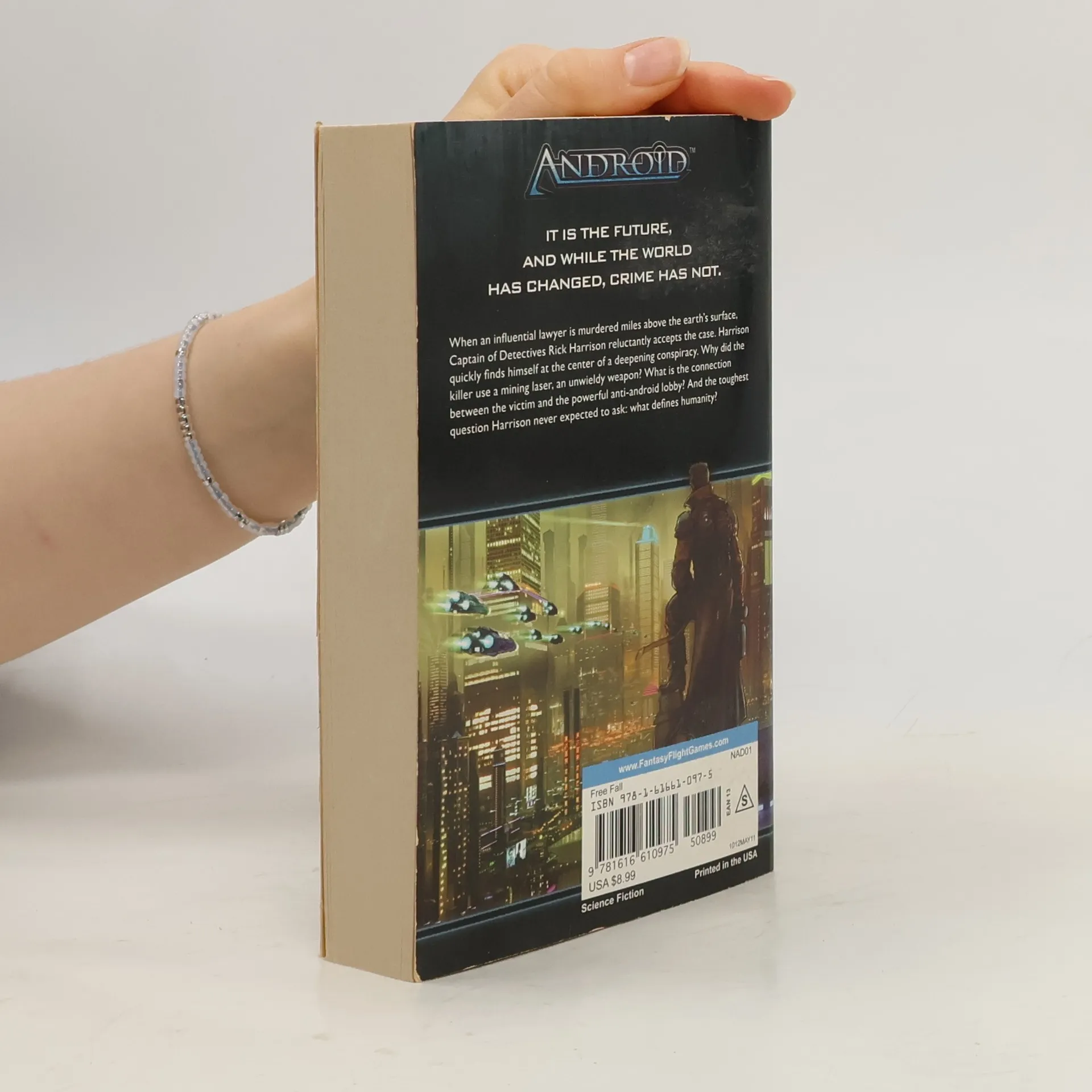 "When an influential lawyer is murdered miles above the earth's surface, Captain of Detectives Rick Harrison reluctantly accepts the case. Harrison quickly finds himself at the center of a deepening conspiracy. Why did the killer use a mining laser, an unwieldy weapon? What is the connection between the victim and the powerful anti-android lobby? And the toughest question Harrison never expected to ask: what defines humanity?" --P.[4] cover.
