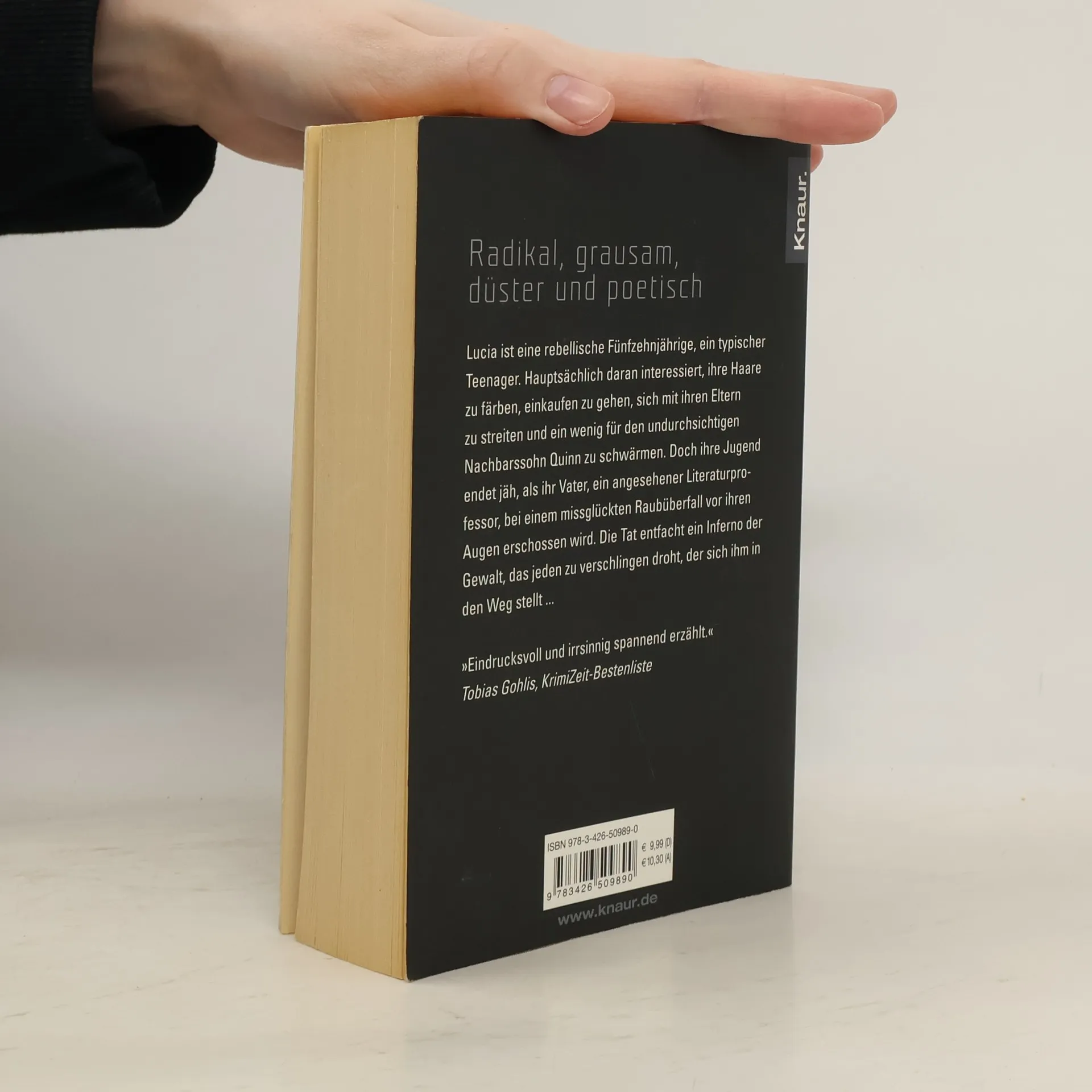 Die fünfzehnjährige Lucia führt ein typisches Teenagerleben, bis ihr Vater bei einem Raubüberfall erschossen wird. Diese Tragödie löst eine Welle der Gewalt aus, die alles und jeden bedroht. Der Roman wird als eindrucksvoll und spannend beschrieben.