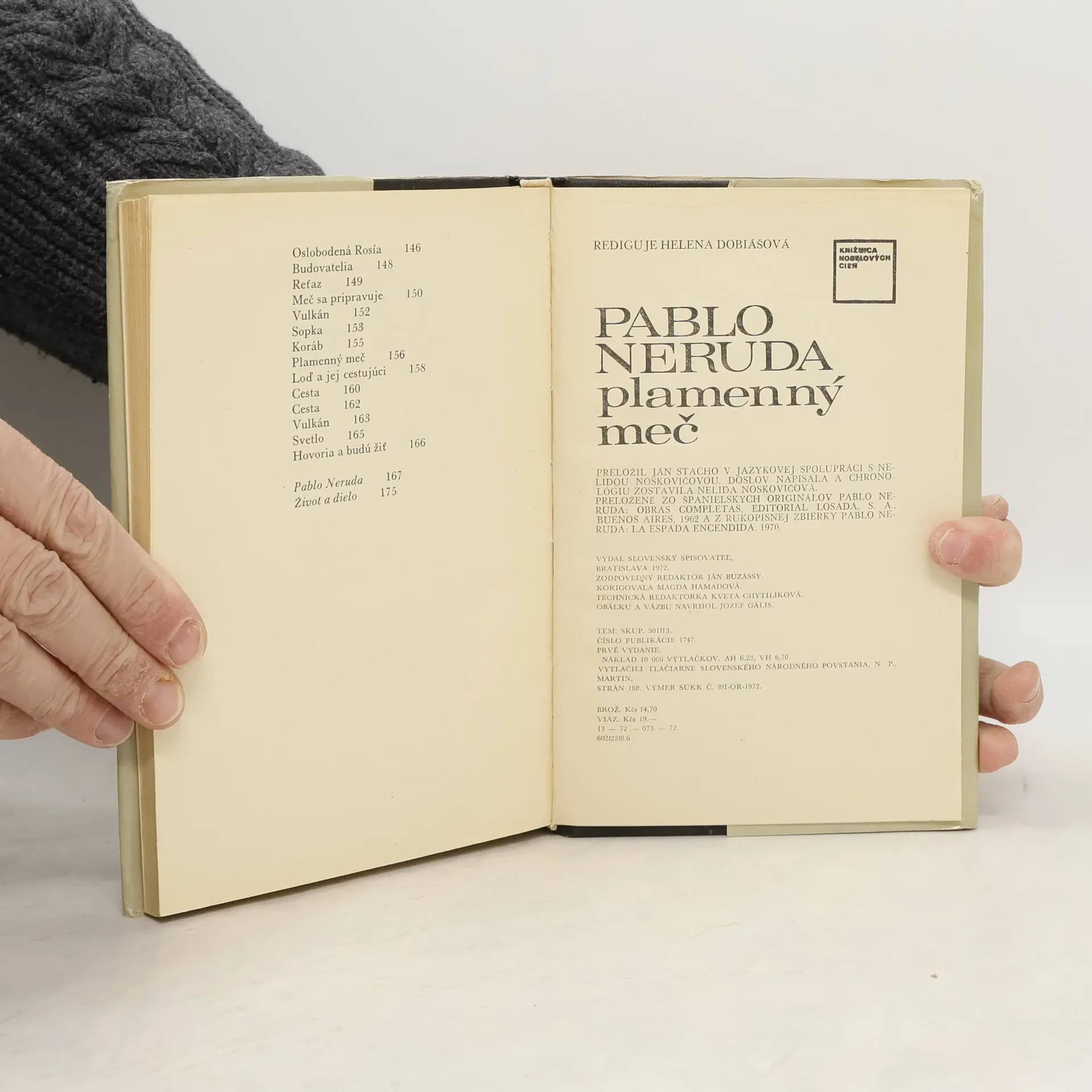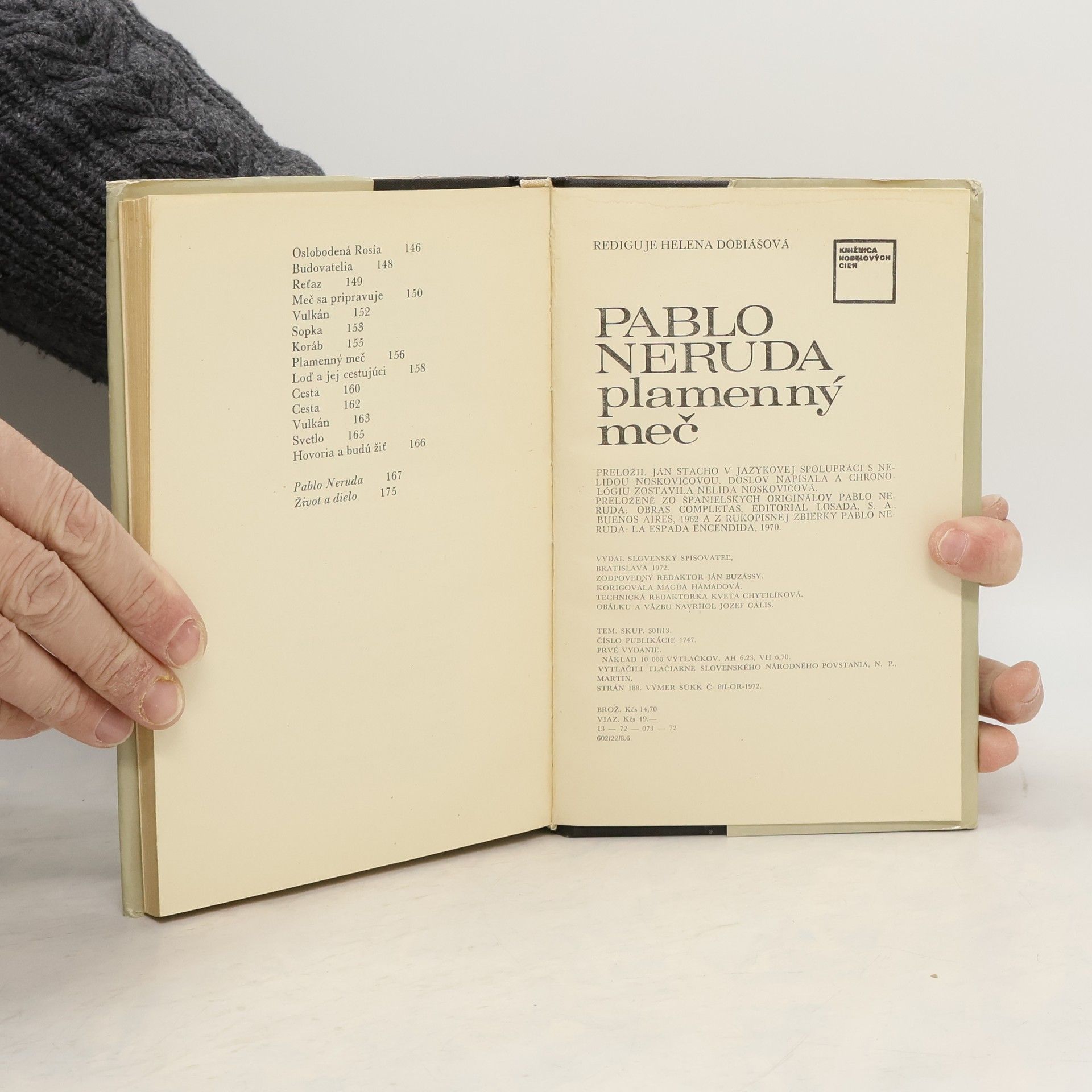 Pablo Neruda, nositeľ Nobelovej ceny za rok 1971, zaujíma výnimočné postavenie v literatúre Latinskej Ameriky. Jeho poézia býva právom charakterizovaná ako akási genéza ľudského svedomia a uvedomenia etických hodnôt človeka, spoločnosti a zmyslu života vôbec. Je to však v prvom rade poézia úzkych kontaktov s realitou okolitého sveta, jeho materiálnej podstaty. Nerudov vrelý vzťah k prírode presahuje v jeho veršoch rámec prírodnej lyriky a stáva sa oslavou života, jeho vzťah k predmetom každodennej potreby, ktorý vyjadril aj vo svojich troch knihách ód, dokázal, že vlastne nejestvuje nepoetický materiál. Z jeho metafor vyšľahne znezrady iskra, ktorá sa rozblčí v plameň sociálneho ohňa.