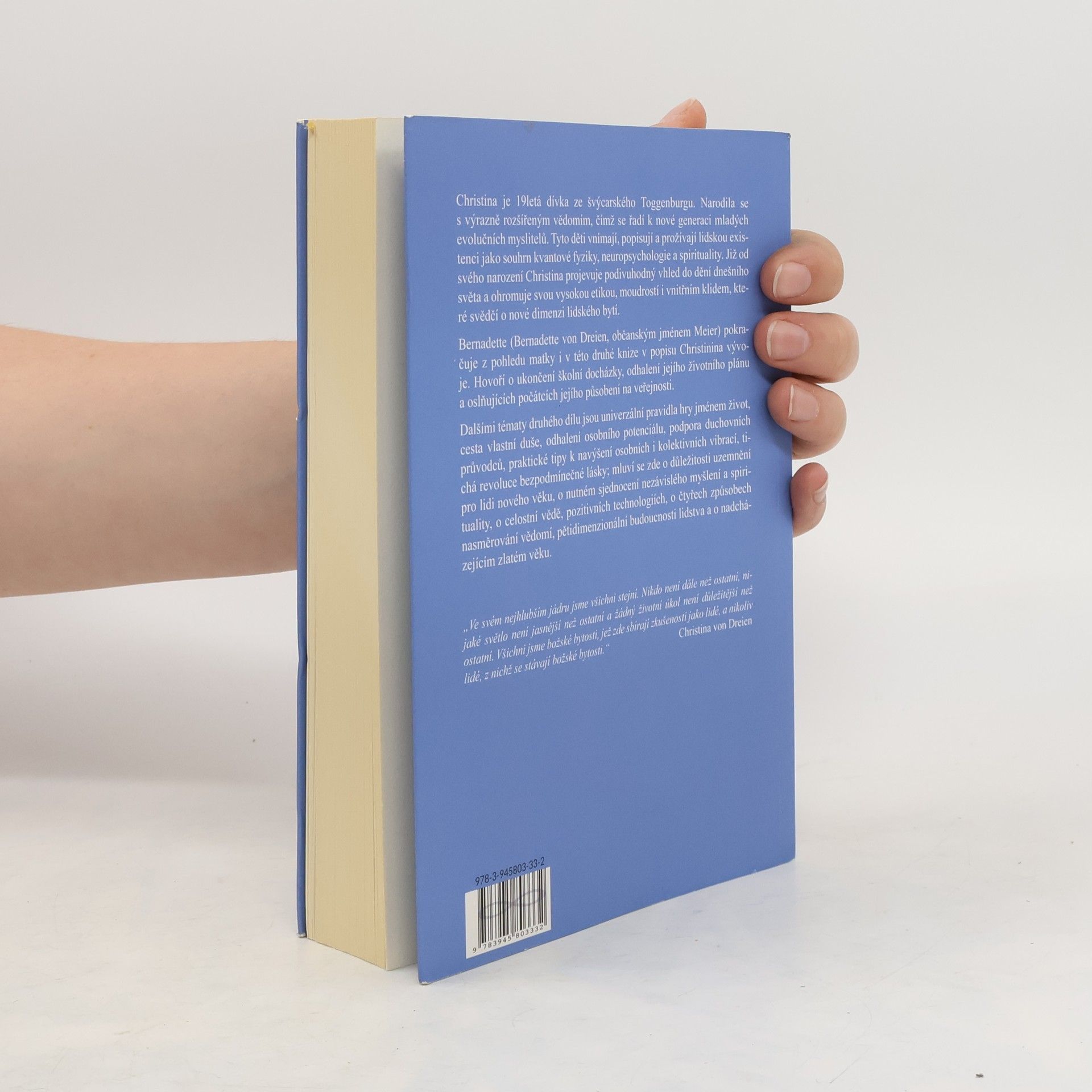 Christina je 19letá dívka ze švýcarského Toggenburgu.Narodila se s výrazně rozšířeným vědomím,čímž se řadí k nové generaci evolučních myslitelů.Již od narození Christina projevuje podivuhodný vhled do dění dnešního světa a ohromuje svou etikou,moudrostí i vnitřím klidem,které svědčí o nové dimenzi lidského bytí. Bernadette(Christinina matka) pokračuje z pohledu matky i v této druhé knize v popisu Christinina vývoje.Hovoří o ukončení školní docházky,odhalení jejího životního plánu a oslňujících počátcích jejího působení na veřejnosti. Dalšími tématy druhého dílu jsou univerzální pravidla hry jménem život,cesta vlastní duše,odhalení osobního potenciálu,podpora duchovních průvodců,praktické tipy k navýšení osobnostních i kolektivních vibrací,tichá revoluce bezpodmíněčné lásky; mluví zde o důležitosti uzemnění pro lidi nového věku,o nutném sjednocení nezávislého myšlení a spirituality,o celostní vědě,pozitivních technologiích,o čtyřech způsobech nasměrování vědomí,pětidimenzionální budoucnosti lidstva a o nadcházejícím zlatém věku.