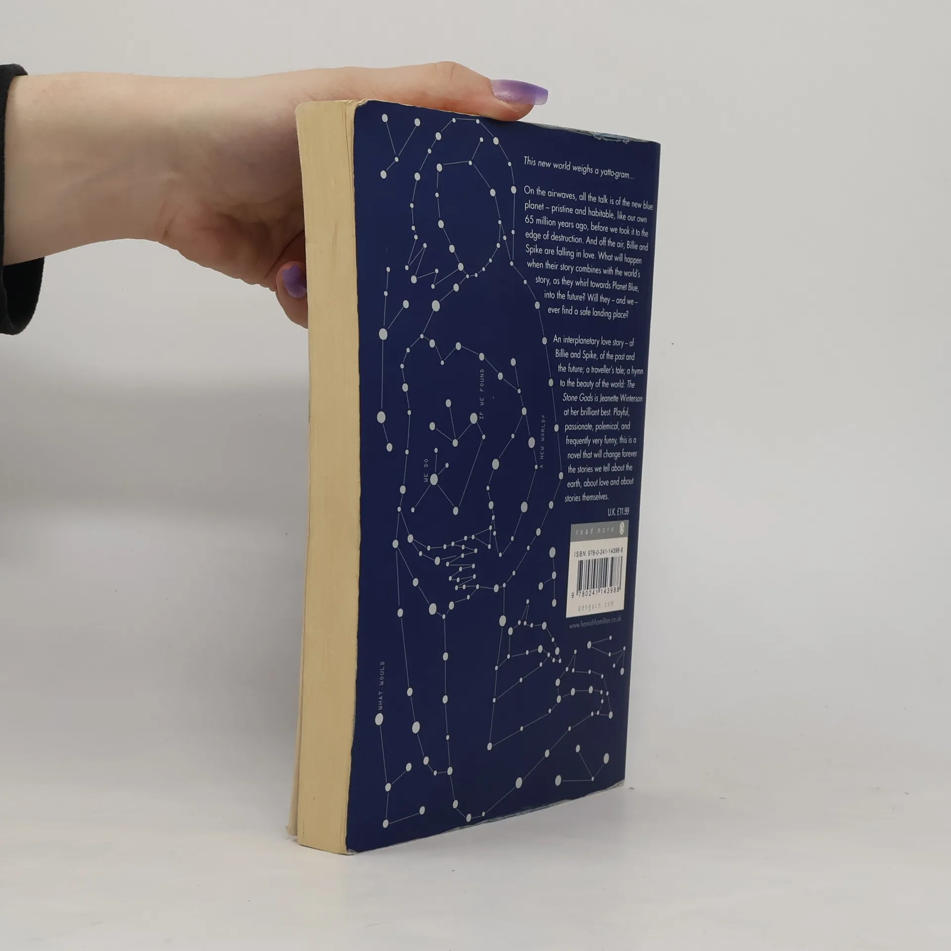 On the airwaves, all the talk is of the new blue planet - pristine and habitable, like our own 65 million years ago, before we took it to the edge of destruction. And off the air, Billie and Spike are falling in love. What will happen when their story combines with the world's story, as they whirl towards Planet Blue, into the future? Will they - and we - ever find a safe landing place? An interplanetary love story - of Billie and Spike, of the past and the future; a traveller's tale; a hymn to the beauty of the world: The Stone Gods is Jeanette Winterson at her brilliant best. Playful, passionate, polemical, and frequently very funny, this is a novel that will change forever the stories we tell about the earth, about love and about stories themselves.