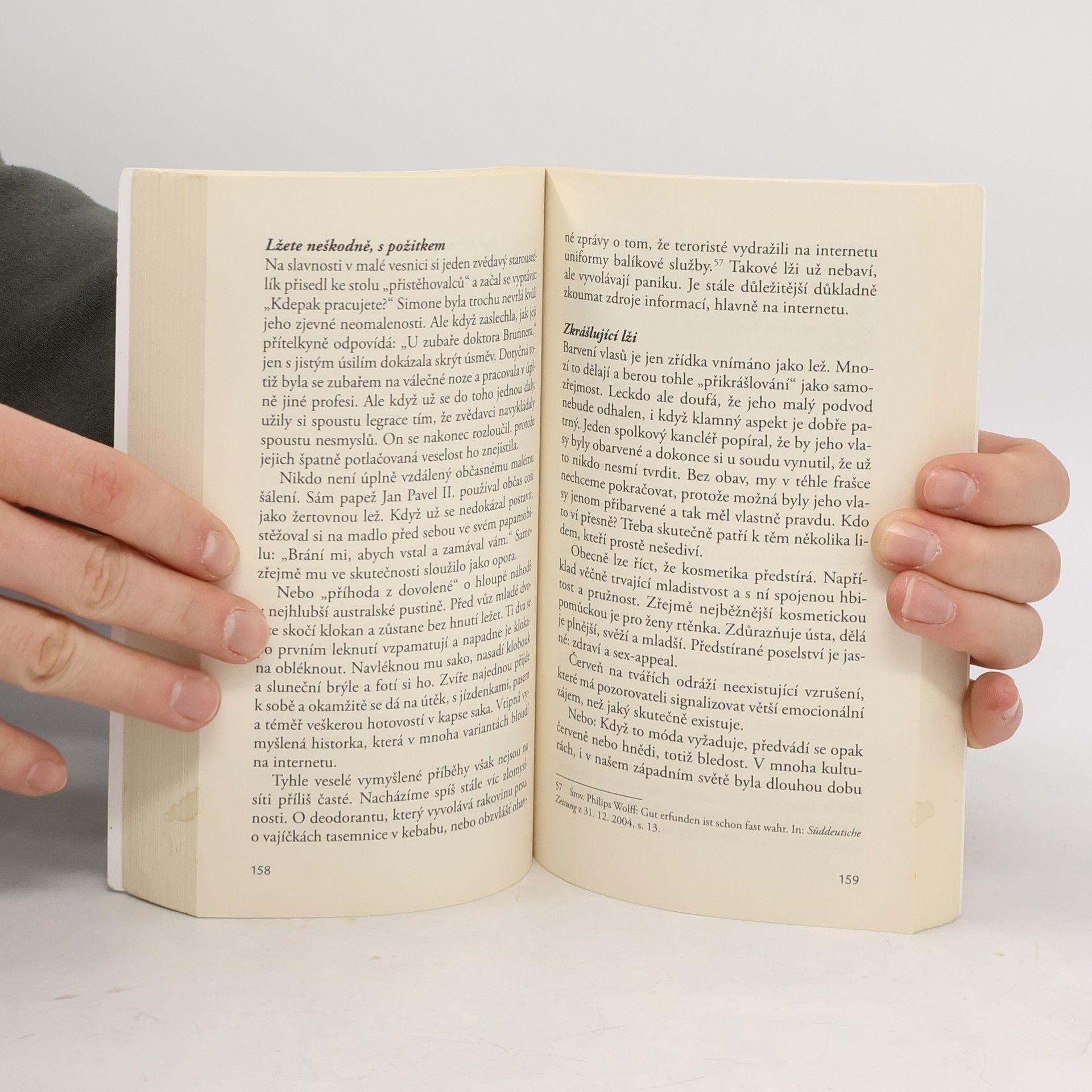 Znáte člověka, který by byl stoprocentně pravdomluvný? A dovedete si představit, jak by se vám vedle takového upřímného člověka žilo? Ráno by vám řekl: „Nějak tloustneš.“ V autobuse by neopomněl na adresu staršího spoluobčana pronést: „Ten pán smrdí.“ A v práci by na konto mladé kolegyně přede všemi prohlásil, že se jí dělají pupínky. Není taková pravdomluvnost určitým druhem útoku? Autoři knihy se nám pokusí vysvětlit, že lež je ve skutečnosti důležitá a potřebná a bez ní by se nám žilo velmi nepříjemně.