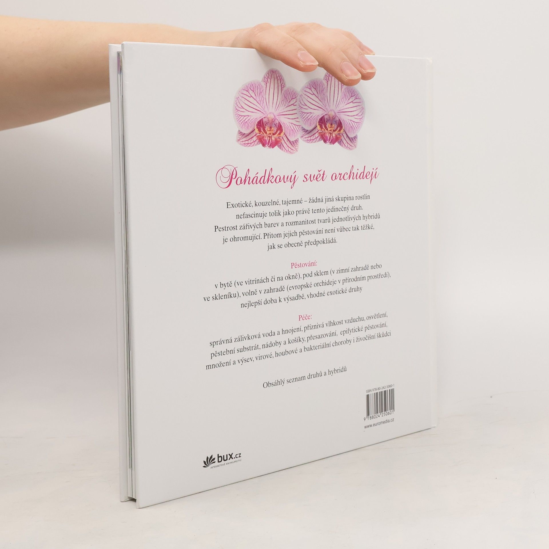 Exotické, kouzelné, tajemné - žádná jiná skupina rostlin nefascinuje tolik jako právě tento jedinečný druh. Pestrost zářivých barev a rozmanitost tvarů jednotlivých hybridů je ohromující. Přitom jejich pěstování není vůbec tak těžké, jak se obecně předpokládá. Publikace nabízí rady, jak orchideje pěstovat v bytě (ve vitrínách či na okně), pod sklem (v zimní zahradě nebo ve skleníku) či volně v zahradě a uvádí obsažný seznam nejkrásnějších hybridů.