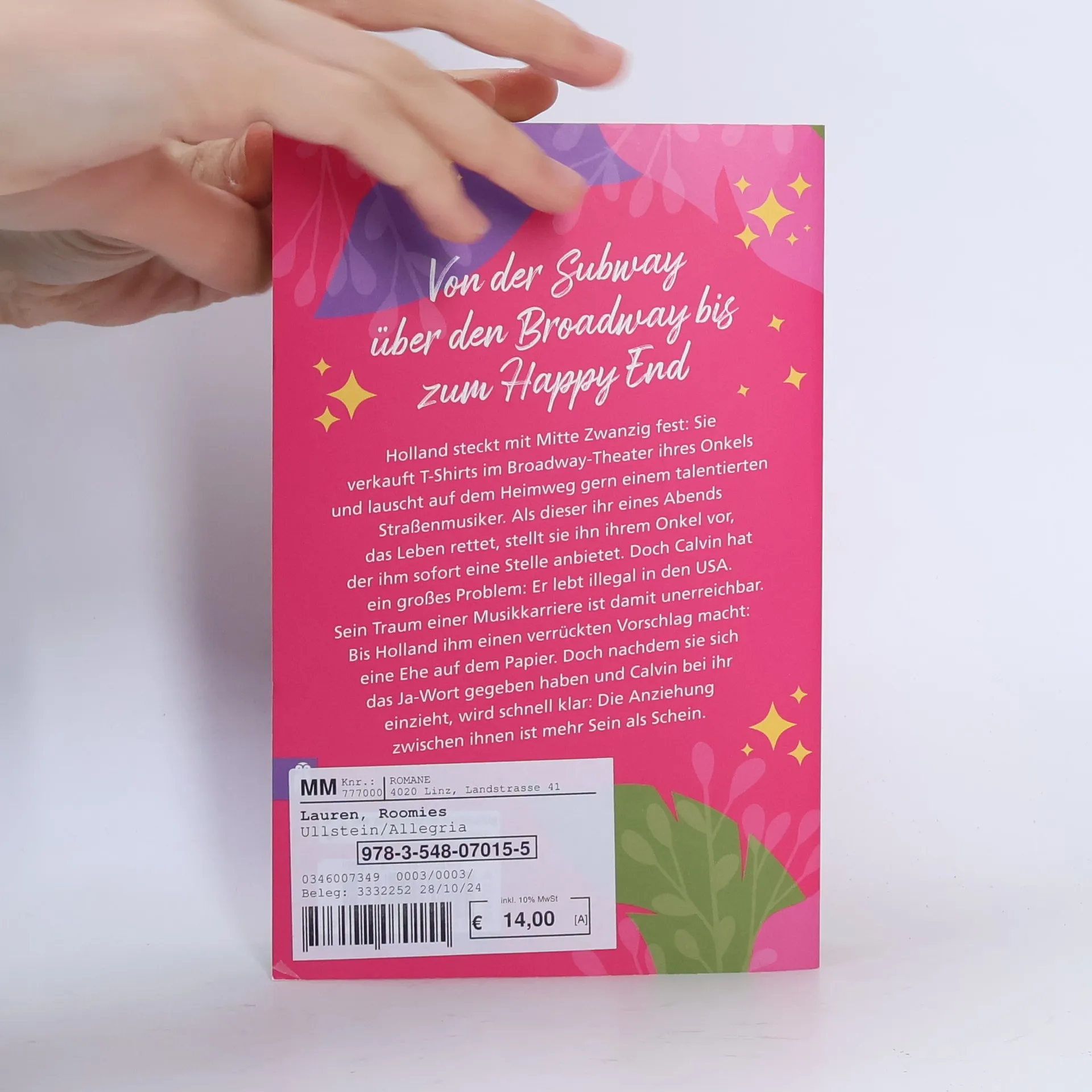 Holland, Mitte zwanzig, verkauft T-Shirts im Theater und verliebt sich in einen Straßenmusiker, Calvin, der illegal in den USA ist. Um ihm zu helfen, schlägt sie eine Ehe vor. Nach der Hochzeit wird die Anziehung zwischen ihnen offensichtlich. Das Buch erschien 2019 unter dem Titel „Weil es Liebe ist“.