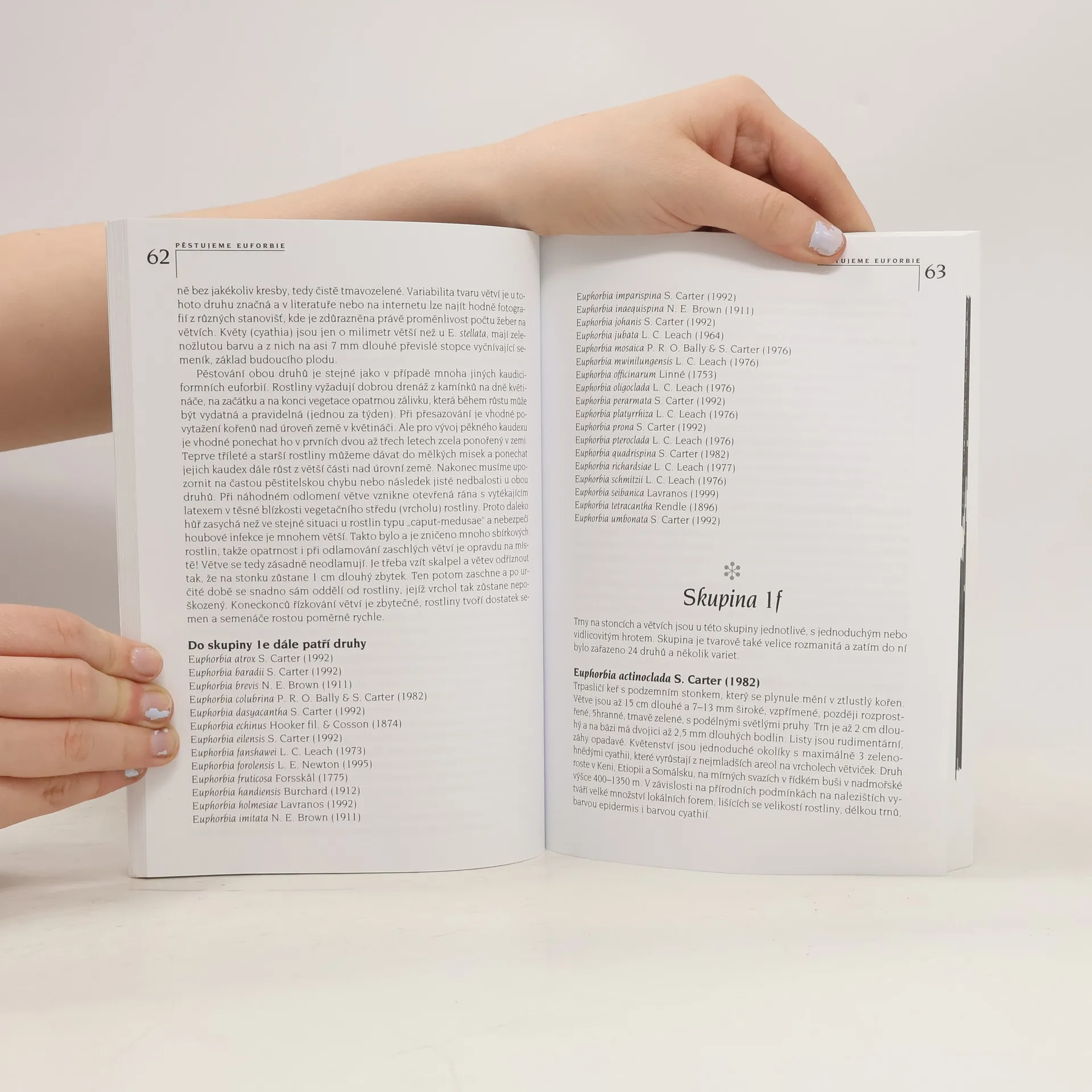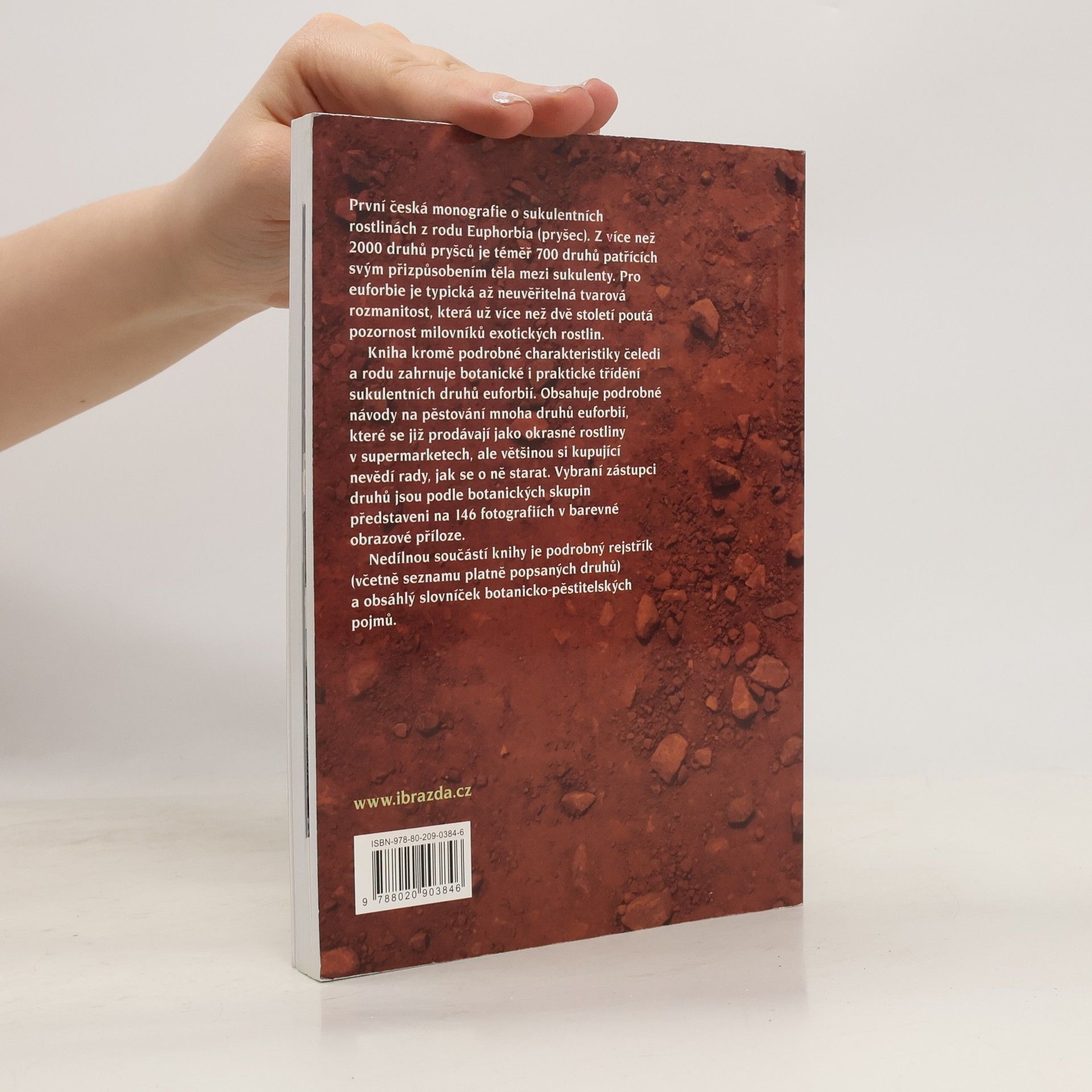 První česká monografie o sukulentních rostlinách z rodu Euphorbia (pryšec) přináší podrobnou charakteristiku čeledi a rodu, včetně botanického a praktického třídění sukulentních druhů. Kniha obsahuje návody na pěstování 165 druhů a 59 poddruhů, z nichž mnohé jsou dostupné v supermarketech, avšak kupující často neví, jak se o ně správně starat. Vybraní zástupci druhů jsou prezentováni na 146 barevných fotografiích. Úvodní kapitoly zahrnují 12 pérovek znázorňujících různé typy cyathií. Kniha obsahuje také podrobný rejstřík, včetně seznamu platně popsaných druhů, a obsáhlý slovníček botanicko-pěstitelských pojmů. Z více než 2 000 druhů pryšců je téměř 700 sukulentních, což svědčí o jejich přizpůsobení. Euforbie se vyznačují neuvěřitelnou tvarovou rozmanitostí, která už více než dvě století fascinuje milovníky exotických rostlin. Bohatost tvarů a růstových forem sukulentních pryšců je hlavním motivem knihy, která je rozdělena do několika kapitol.