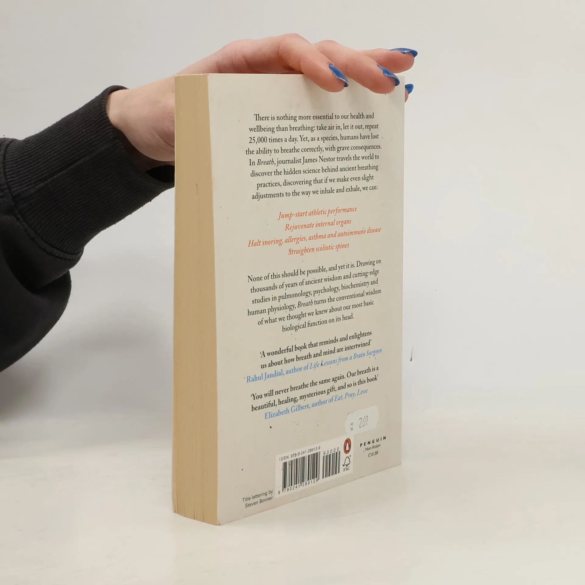 THE PHENOMENAL INTERNATIONAL BESTSELLER AS HEARD ON STEVEN BARTLETT'S 'DIARY OF A CEO' 'Who would have thought something as simple as changing the way we breathe could be so revolutionary for our health, from snoring to allergies to immunity? A fascinating book, full of dazzling revelations' Dr Rangan Chatterjee There is nothing more essential to our health and wellbeing than breathing: take air in, let it out, repeat 25,000 times a day. Yet, as a species, humans have lost the ability to breathe correctly, with grave consequences. In Breath, journalist James Nestor travels the world to discover the hidden science behind ancient breathing practices to figure out what went wrong and how to fix it. Modern research is showing us that making even slight adjustments to the way we inhale and exhale can: - improve our exercise techniques - restore healthy sleep patterns and minimise snoring - halt allergies, asthma and even autoimmune disease Drawing on thousands of years of ancient wisdom and cutting-edge studies, Breath is full of revelations, turning what we thought we knew about our most basic biological function on its head. You will never breathe the same again.