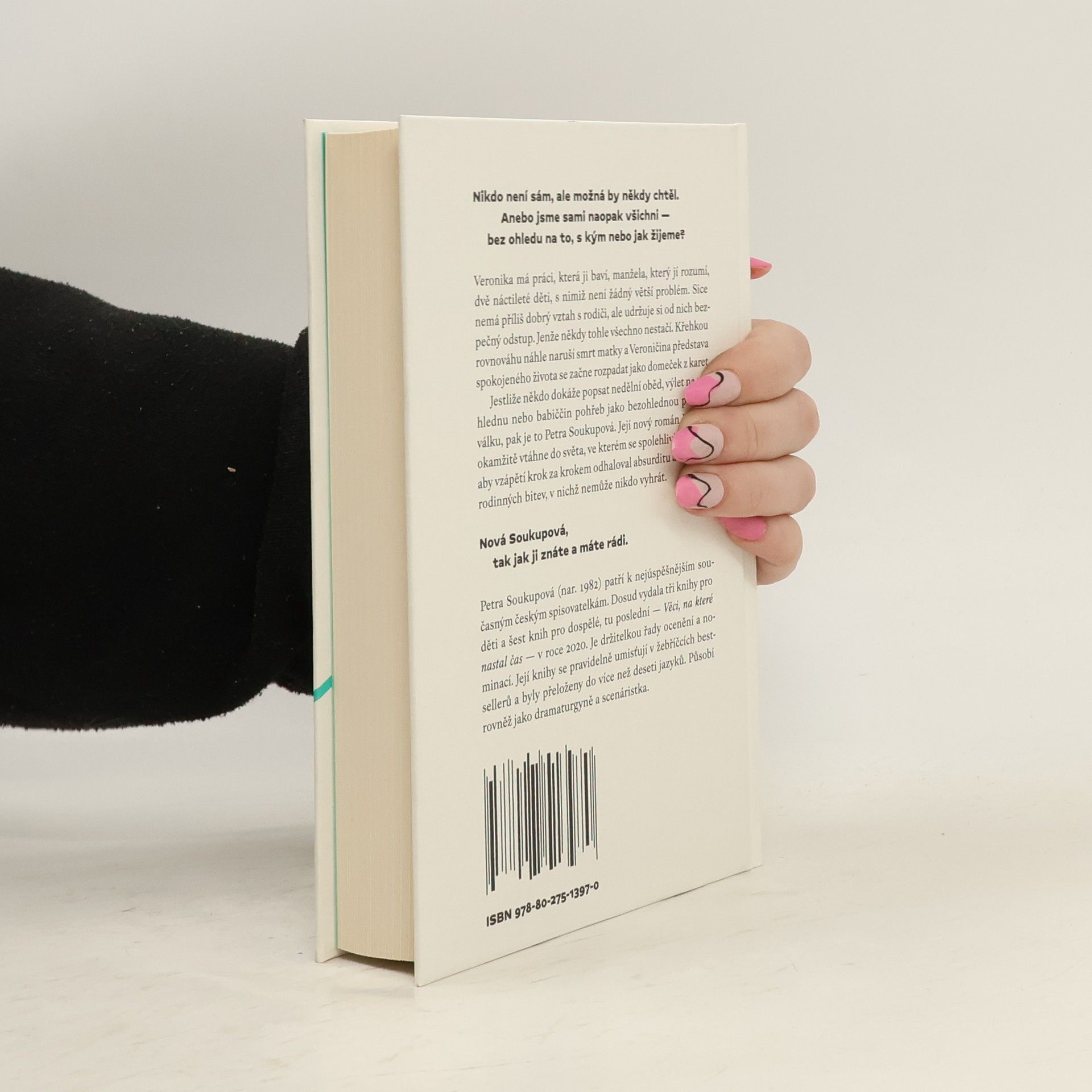 Nikdo není sám, ale možná by někdy chtěl. Anebo jsme sami naopak všichni — bez ohledu na to, s kým nebo jak žijeme?Veronika má práci, která ji baví, manžela, který jí rozumí, dvě náctileté děti, s nimiž není žádný větší problém. Sice nemá příliš dobrý vztah s rodiči, ale udržuje si od nich bezpečný odstup. Jenže někdy tohle všechno nestačí. Křehkou rovnováhu náhle naruší smrt matky a Veroničina představa spokojeného života se začne rozpadat jako domeček z karet.Jestliže někdo dokáže popsat nedělní oběd, výlet na rozhlednu nebo babiččin pohřeb jako bezohlednou poziční válku, pak je to Petra Soukupová. Její nový román čtenáře okamžitě vtáhne do světa, ve kterém se spolehlivě poznává, aby vzápětí krok za krokem odhaloval absurditu a trapnost rodinných bitev, v nichž nemůže nikdo vyhrát.Nová Soukupová, tak jak ji znáte a máte rádi.