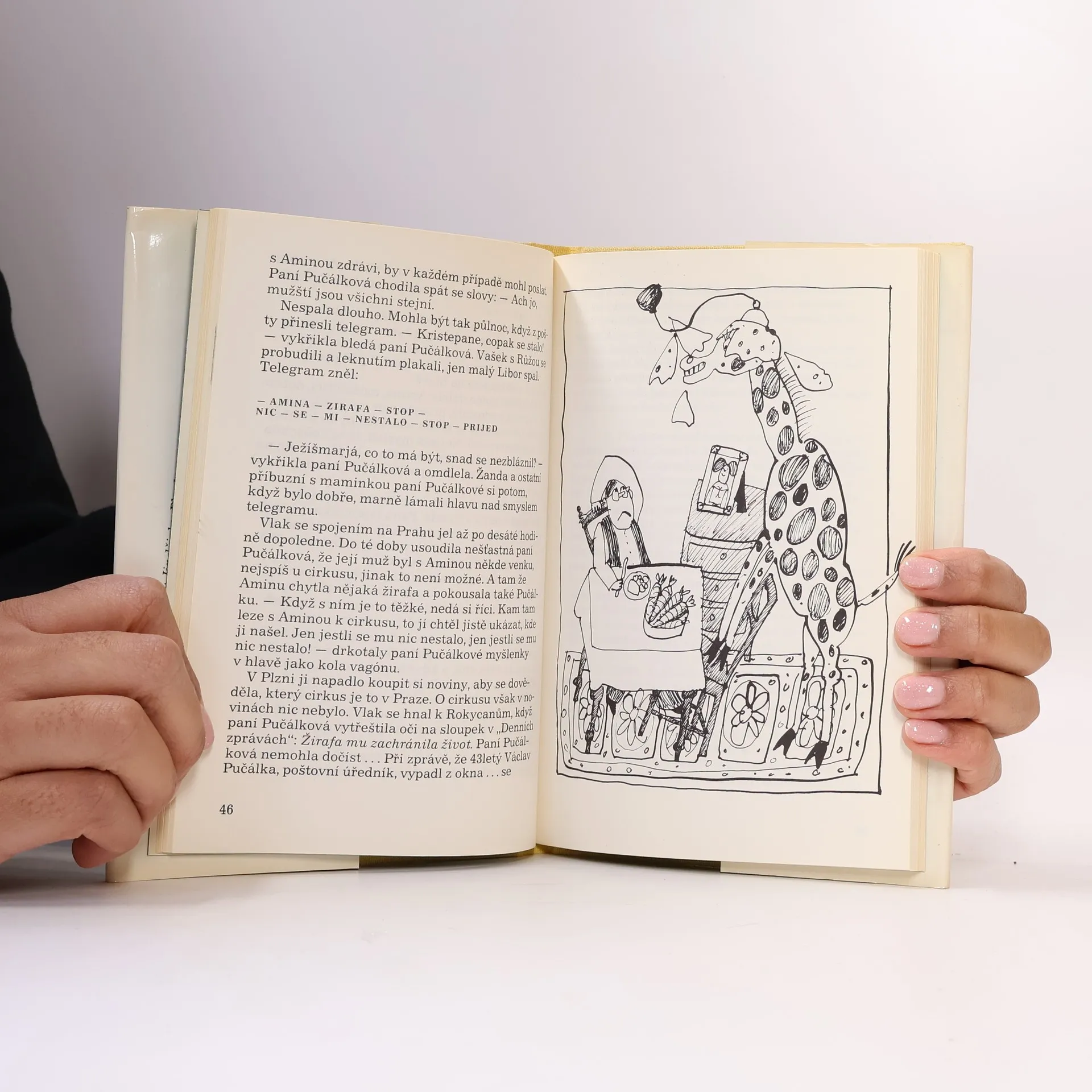 Humoristické vyprávění o trampotách s nalezeným štěnětem, z něhož nakonec vyroste žirafa. Děti pana poštovního tajemníka Pučálky našly na místě bývalého cirkusu štěně a teprve po mnoha ztřeštěných příhodách a dobrodružstvích zjistí rodina, že doma přechovává žirafu. Kromě směšných a zábavných historek ukazuje autor i na lidské nectnosti a slabosti a snaží se zdůraznit myšlenku, že člověk má za každých okolností zůstat vůči druhému člověkem.
