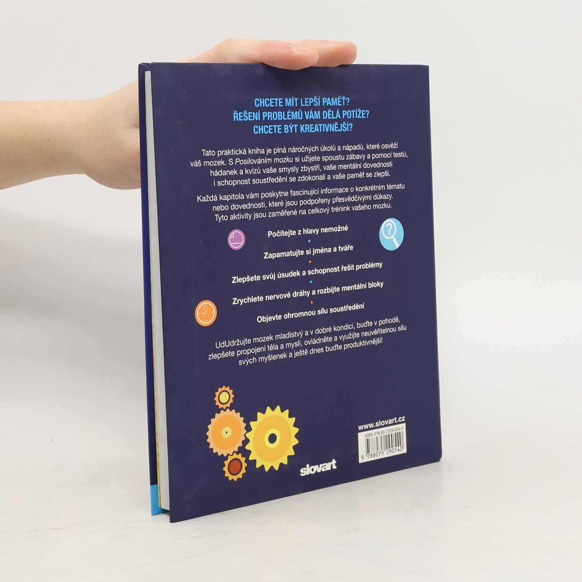 Tato kniha je plná nápadů a úloh, jejichž úkolem je napomoci k posílení a zlepšení funkce mozku. Zábavným způsobem a pomocí řady rozmanitých úloh pomáhá čtenáři, aby si zbystřil úsudek, zdokonalil svoje duševní schopnosti a vylepšil koncentraci a paměť. Každá kapitola přináší kromě zajímavých teoretických poznatků i praktické aktivity, jejichž pomocí lze mozek trénovat a propracovat se tak k jeho lepšímu fungování.