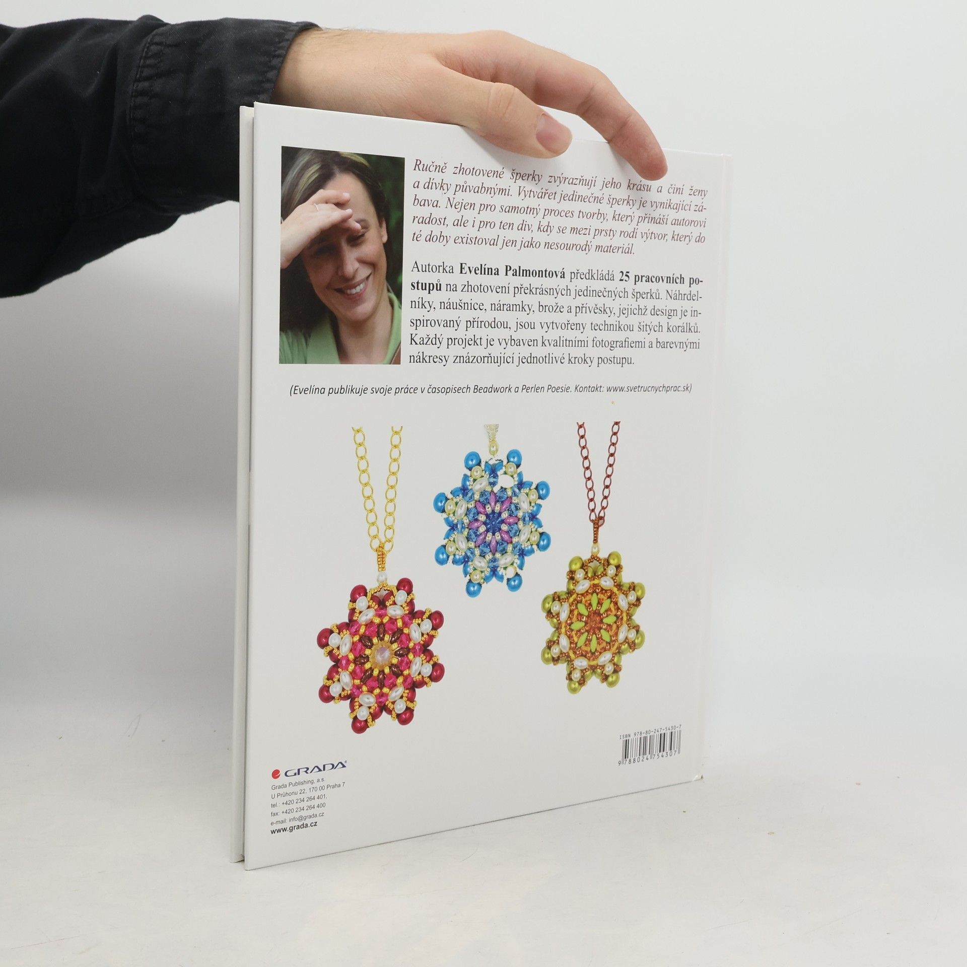 25 pracovních postupů. Ručně zhotovené šperky zvýrazňují jeho krásu a činí ženy a dívky půvabnými. Vytvářet jedinečné šperky je vynikající zábava. Nejen pro samotný proces tvorby, který přináší autorovi radost, ale i pro ten div, kdy se mezi prsty rodí výtvor, který do té doby existoval jen jako nesourodý materiál. Autorka Evelína Palmontová předkládá 25 pracovních postupů na zhotovení překrásných jedinečných šperků. Náhrdelníky, náušnice, náramky, brože a přívěsky, jejichž design je inspirovaný přírodou, jsou vytvořeny technikou šitých korálků. Každý projekt je vybaven kvalitními fotografiemi a barevnými nákresy znázorňující jednotlivé kroky postupu.