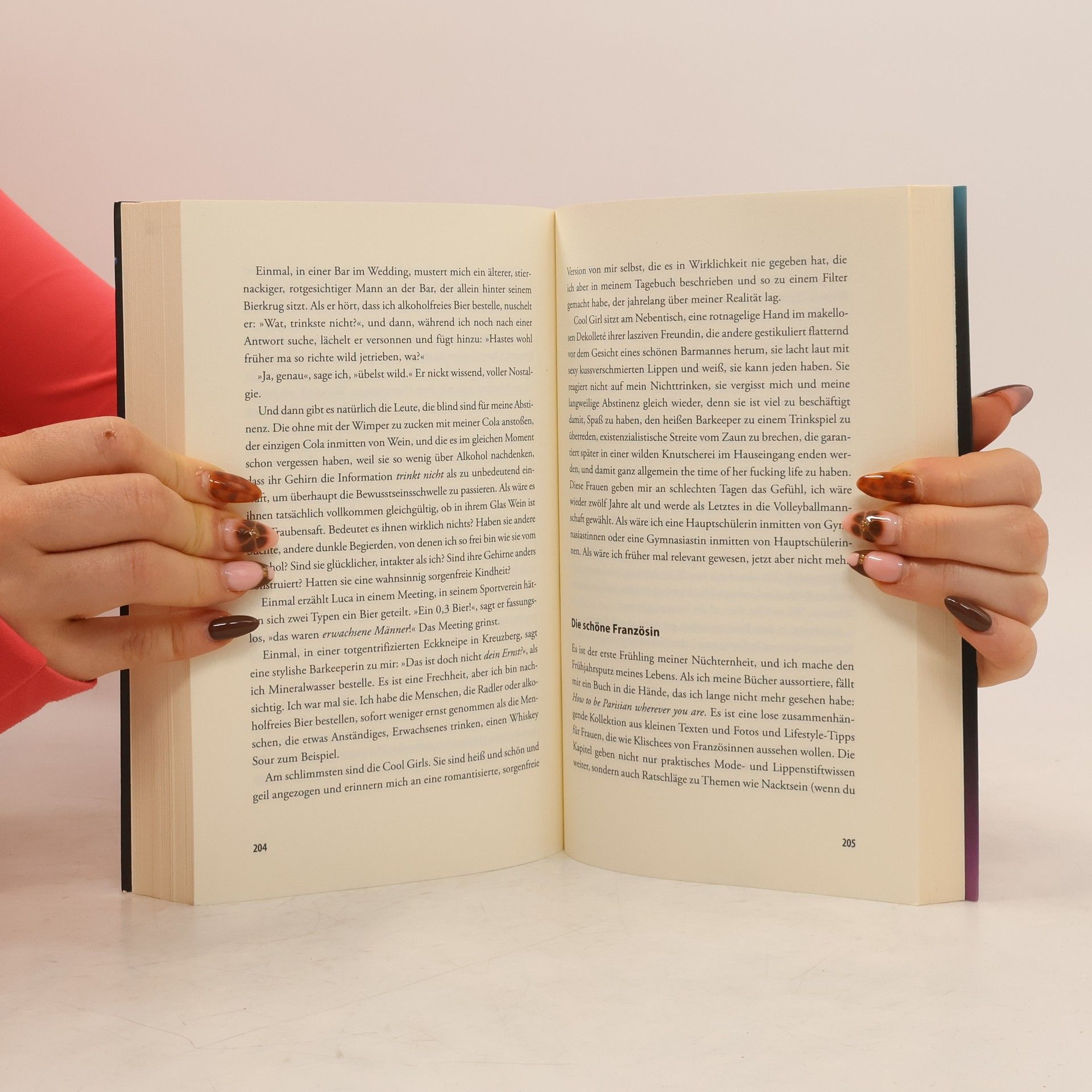 Mia, die jüngste Tochter einer trinkenden Dynastie, sieht sich als Partygirl und Künstlerseele. Nach Jahren im Berliner Nachtleben und einer toxischen Beziehung erkennt sie mit Anfang Dreißig, dass Alkohol ihr Leben dominiert. Ihre Geschichte verbindet persönliche Abhängigkeit mit einer gesellschaftlichen Analyse des Trinkens und endet mit der These, dass Nüchternheit rebellisch ist.