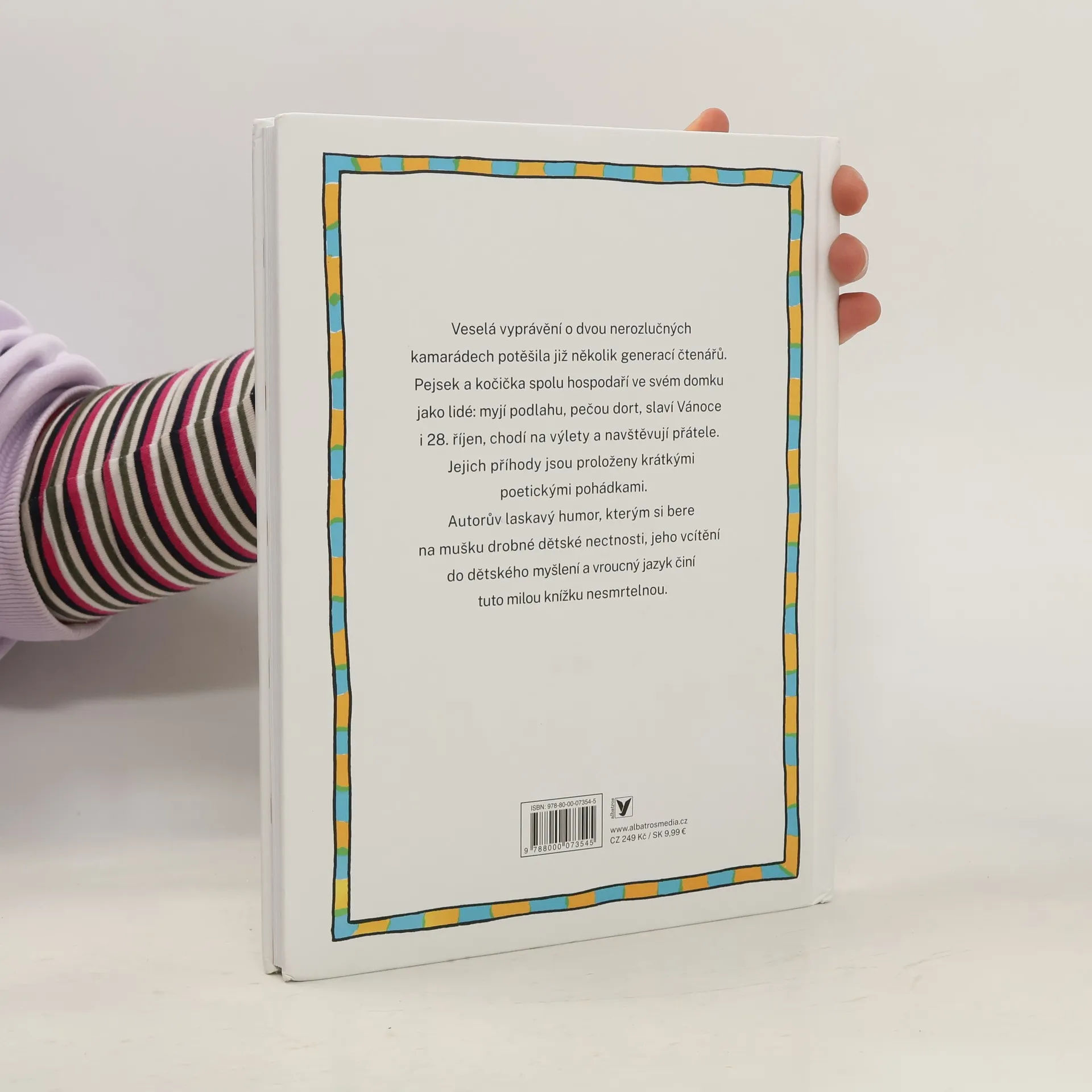 Veselé a vtipné vyprávění o pejskovi a kočičce, kteří spolu hospodaří v malém domečku a snaží se všechno dělat jako lidé. Jak pejsek s kočičkou pekli dort, jak dělali dětem Mikuláše a čerta, jak zachraňovali odhozené hračky i spoustu dalších úsměvných vyprávění najdou děti v této, dnes již klasické, knížce. Kultivovaný jazyk, spousta nápadů i zdařilé ilustrace autora řadí tuto knihu mezi nejlepší tituly literatury pro děti.