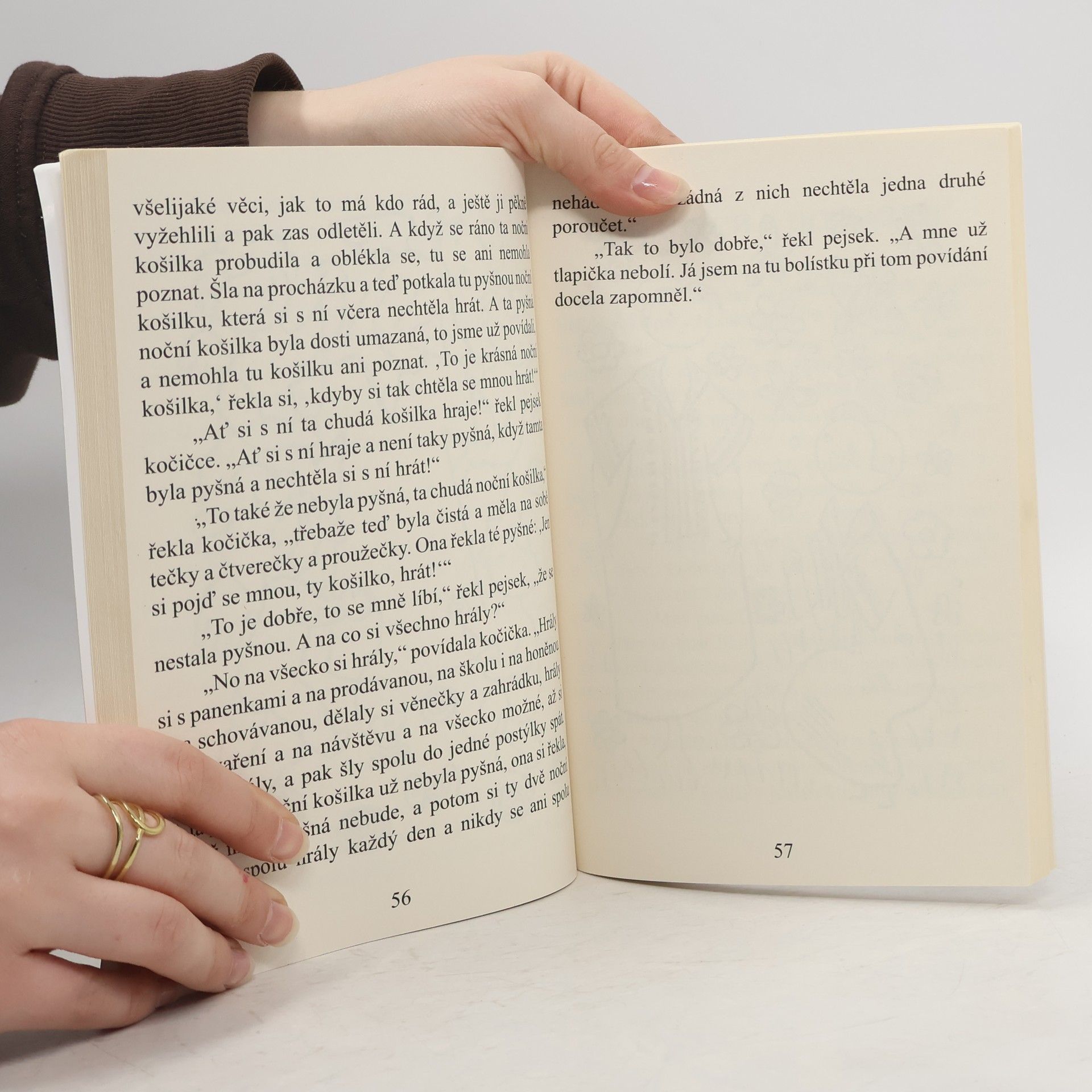 Zkrácená verze pohádek o pejskovi a kočičce pro nejmenší... Milé děti, tak si představte, že se taková věc může vůbec pejskům a kočičkám stát! Vidíte a stane se. Někdy. Když je k tomu správná příležitost a když si k tomu docela snadno představíme, že pejskové a kočičky jsou vlastně ve své kůži oblečeni stejně jako lidé. A taková díra do kalhot je velikánská ostuda pro každého, kdo nosí kalhoty. Tedy i pro pejsky. Člověk nebo i zvířátko musí být na svoje věci tuze opatrní, protože těm neopatrným se mohou stát i jiné věci. Mohou si třeba rozbít nějakou hračku, a co je ještě horší, mohou ji třeba i ztratit. A s rozbitým autíčkem si nemůžete hrát na závody a se ztraceným kyblíčkem se nedá hrát na vaření. A to jsme ještě nepovídali o pohozených hračkách. To jsou ty nejubožejší hračky na světě vůbec, když je ti jejich tatínkové a maminky, ti kluci a holčičky sami pohodili. Ztratit se náhodou může třeba i hračka, nebo i nějaké peníze, ale pohodit a nechat někde ležet nějakou hračku nebo dokonce i nějakou panenku, to se mezi slušnými dětmi nedělá. To ne. A protože oba dobře víme, že se toho někdy některé dítě, nějaká holčička nebo kluk dopustí, proto Vám chceme povědět o takové jedné malé, ztracené a ubohé panence, abyste věděli, že se takové věci nemají nikdy dělat. Tak nazdar a v úctě KOČIČKA a PEJSEK
