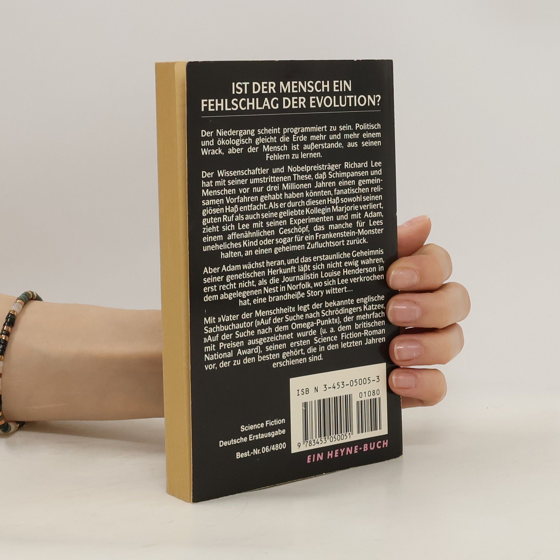 ST DER MENSCH EIN FEHLSCHLAG DER EVOLUTION? Der Niedergang scheint programmiert zu sein. Politisch und ökologisch gleicht die Erde mehr und mehr einem Wrack, aber der Mensch ist außerstande, aus seinen Fehlern zu lernen. Der Wissenschaftler und Nobelpreisträger Richard Lee hat mit seiner umstrittenen These, daß Schimpansen und Menschen vor nur drei Millionen Jahren einen gemeinsamen Vorfahren gehabt haben könnten, fanatischen religiösen Hass entfacht. Als er durch diesen Hass sowohl seinen guten Ruf als auch seine geliebte Kollegin Marjorie verliert, zieht sich Lee mit seinen Experimenten und mit Adam, einem affenähnlichen Geschöpf, das manche für Lees uneheliches Kind oder sogar für ein Frankenstein-Monster halten, an einen geheimen Zufluchtsort zurück. Aber Adam wächst heran, und das erstaunliche Geheimnis seiner genetischen Herkunft läßt sich nicht ewig wahren, erst recht nicht, als die Journalistin Louise Henderson in dem abgelegenen Nest in Norfolk, wo sich Lee verkrochen hat, eine brandheiße Story wittert... Mit »Vater der Menschheit« legt der bekannte englische Sachbuchautor (»Auf der Suche nach Schrödingers Katze«, »Auf der Suche nach dem Omega-Punkt«), der mehrfach mit Preisen ausgezeichnet wurde (u. a. dem britischen National Award), seinen ersten Science Fiction-Roman vor, der zu den besten gehört, die in den letzten Jahren erschienen sind. Science Fiction Deutsche Erstausgabe