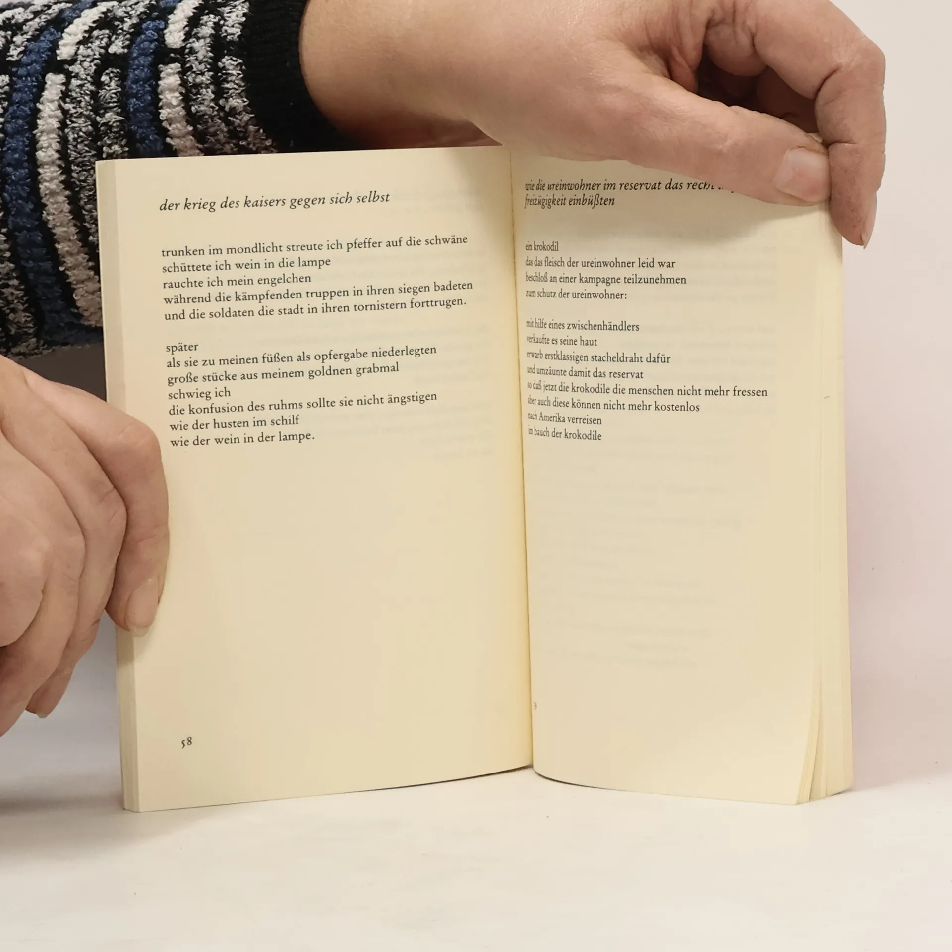 Die Gedichte dieser Auswahl stammen aus mehreren Publikationen von Mircea Dinescu und einem unveröffentlichten Manuskript. Die Auswahl folgt weitgehend der Entstehungschronologie und wurde von Werner Söllner übersetzt, der auch ein Nachwort beigefügt hat.