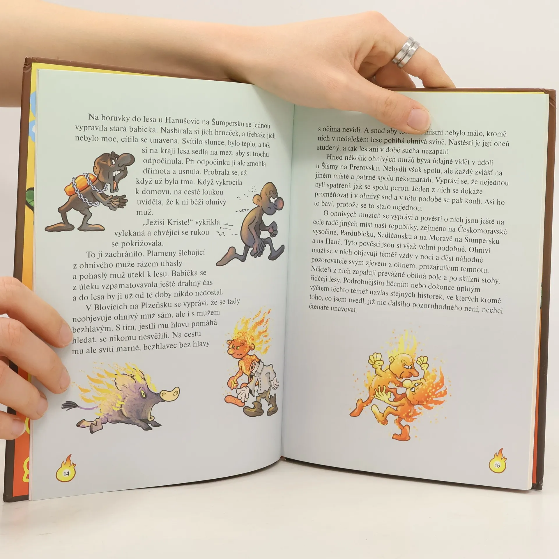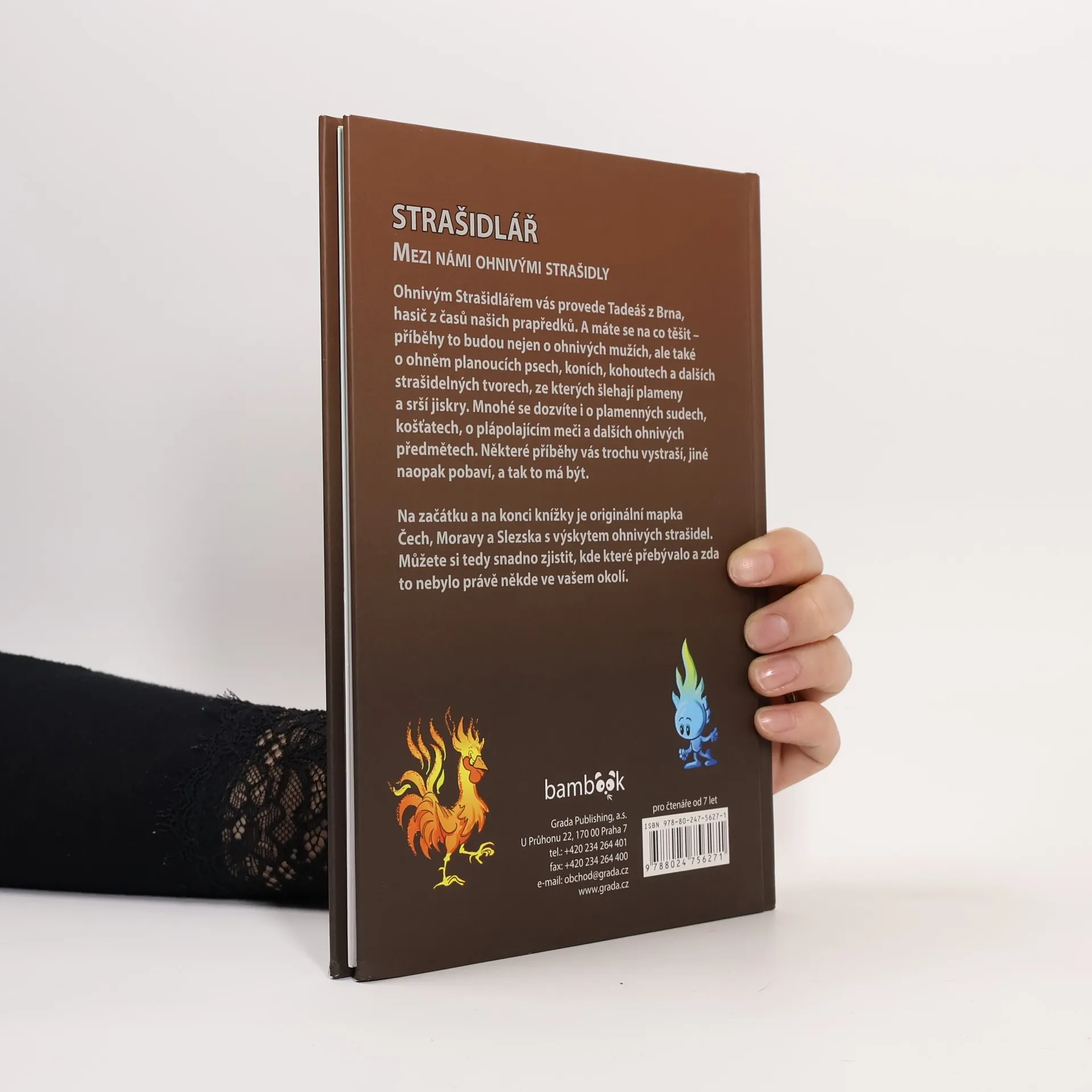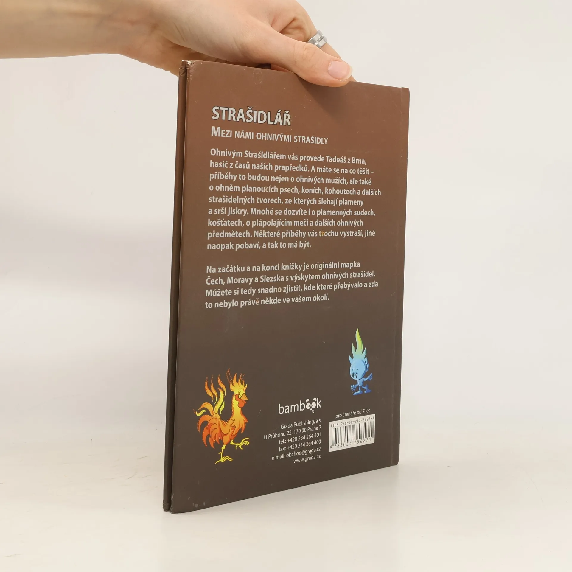 Ohnivým Strašidlářem vás provede Tadeáš z Brna, hasič z časů našich prapředků. A máte se na co těšit – příběhy to budou nejen o ohnivých mužích, ale také o ohněm planoucích psech, koních, kohoutech a dalších strašidelných tvorech, ze kterých šlehají plameny anebo srší jiskry Mnohé se dozvíte i o plamenných sudech, košťatech, o plápolajícím meči a dalších ohnivých předmětech. Některé příběhy vás trochu vystraší, jiné naopak pobaví, a tak to má být. Na začátku a na konci knížky je originální mapka Čech, Moravy a Slezska s výskytem ohnivých strašidel. Můžete si tedy snadno zjistit, kde které přebývalo a zda to nebylo právě někde ve vašem okolí.